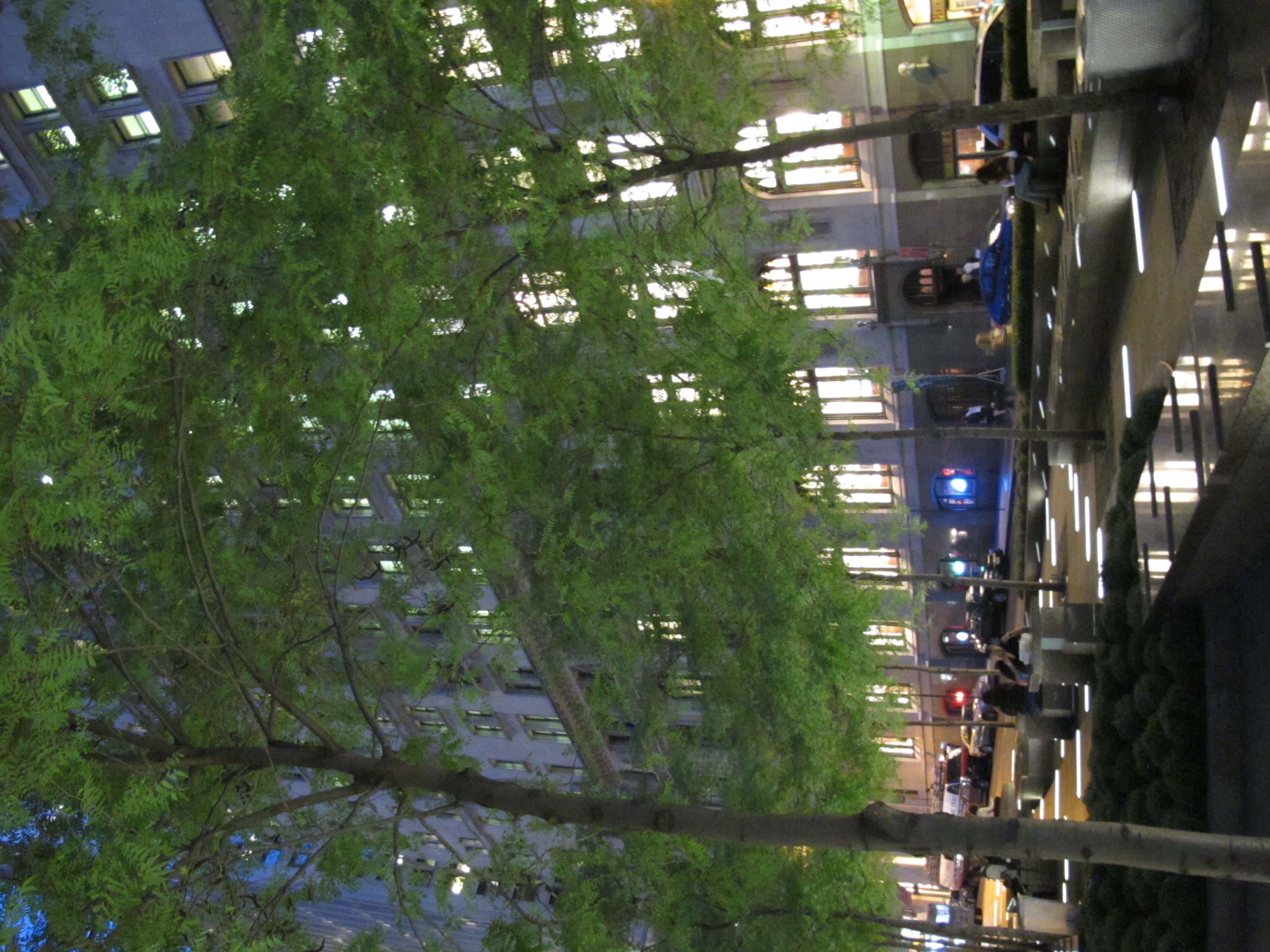 Our feet were killing us by the end of this day, but we continued to enjoy our walk on this beautiful night. We debated shopping for a souviner (would it be better than a souvenir?) As we were heading to the subway, we came across Zuccotti Park, formerly called Liberty Plaza Park. It had been damaged during the 9/11 attacks and was reconstructed. It currently has seating areas as lights built into the ground, which makes for a spectacular sight at night. This was the home of Occupy Wall Street two years ago.