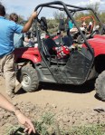 Time for some adventure. We boarded a UTV (utility terrain vehicle) and went trail riding in the desert north of Scottsdale. We donned safety helmets and gloves, wore goggles and a gauze dust mask (kind of like a ski mask, with a hole to see through). We really needed these because it was very dusty out there.