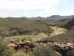 We spent about two hours scaling hills, crossing streams, eating dust, getting our bones shaken. It was definitely fun. At one point, we stopped at some old Hohokam ruins, a fortress they built to defend themselves from enemy attack. We had to climb by foot to this site, through some narrow openings in the rock. There were some great views from that location.