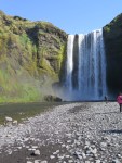 We were up early this morning to catch a bus for a 14 hour tour. We covered a lot of territory in the southeast part of Iceland. Our first stop was at the Skogafoss Waterfall, which was truly beautiful – 200 feet high and 82 feet wide. We could walk close enough to feel the mist. Cold!!! But worth it for the view of the rainbows forming in the sun, sometimes single, often double. Some people were paragliding (motorized) around the waterfall. I wish I could have been doing that – what wonderful views they must have had!