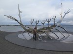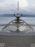 Our flight was scheduled for 4:45 pm, so we had some time to continue exploring the town. We walked a few blocks to see the “Sun Voyager,” a sculpture by Jon Gunnar Arnason, and unveiled in 1990. Many people think it is a Viking ship, but Arnason intended it to be a dreamboat, an ode to the sun. It is a promise of undiscovered territory, a dream of hope, progress and freedom. It’s built of stainless steel, set on granite, and located by the sea.