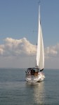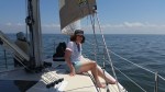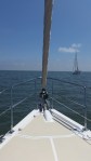 We went sailing this afternoon, on a Sailing Florida Charter. There were seven passengers, including son Ian and his wife, Jessica. It was easy to move around and enjoy the sun, and we were fortunate enough to see several dolphins playing in the bay.