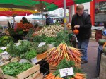 We were delighted to happen upon an open air market surrounding the Church of Sainte Jeanne-d’Arc. The windows were removed from the old church to preserve them during World War II, and incorporated into the modern church. The sweeping curves of the church are meant to evoke the flames that consumed Sainte Jeanne-d’Arc.