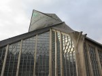 - Window of modern church, next to foundation of church destroyed in war