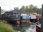 We arrived last night at Conflans-Sainte-Honorine, not far from Paris. There are several cruise boats on the Seine, and we were triple parked at the dock. To get to land, we have to traverse the other two boats, so we get to do a little snooping on the way. On the other hand, this often means our cabin window faces that of the neighbor – not much privacy!
