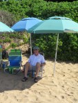 Beach day today. We rented beach umbrellas which allowed us to enjoy several hours without burning to a crisp. $4 per chair – pretty good deal, I think. More whale watching.