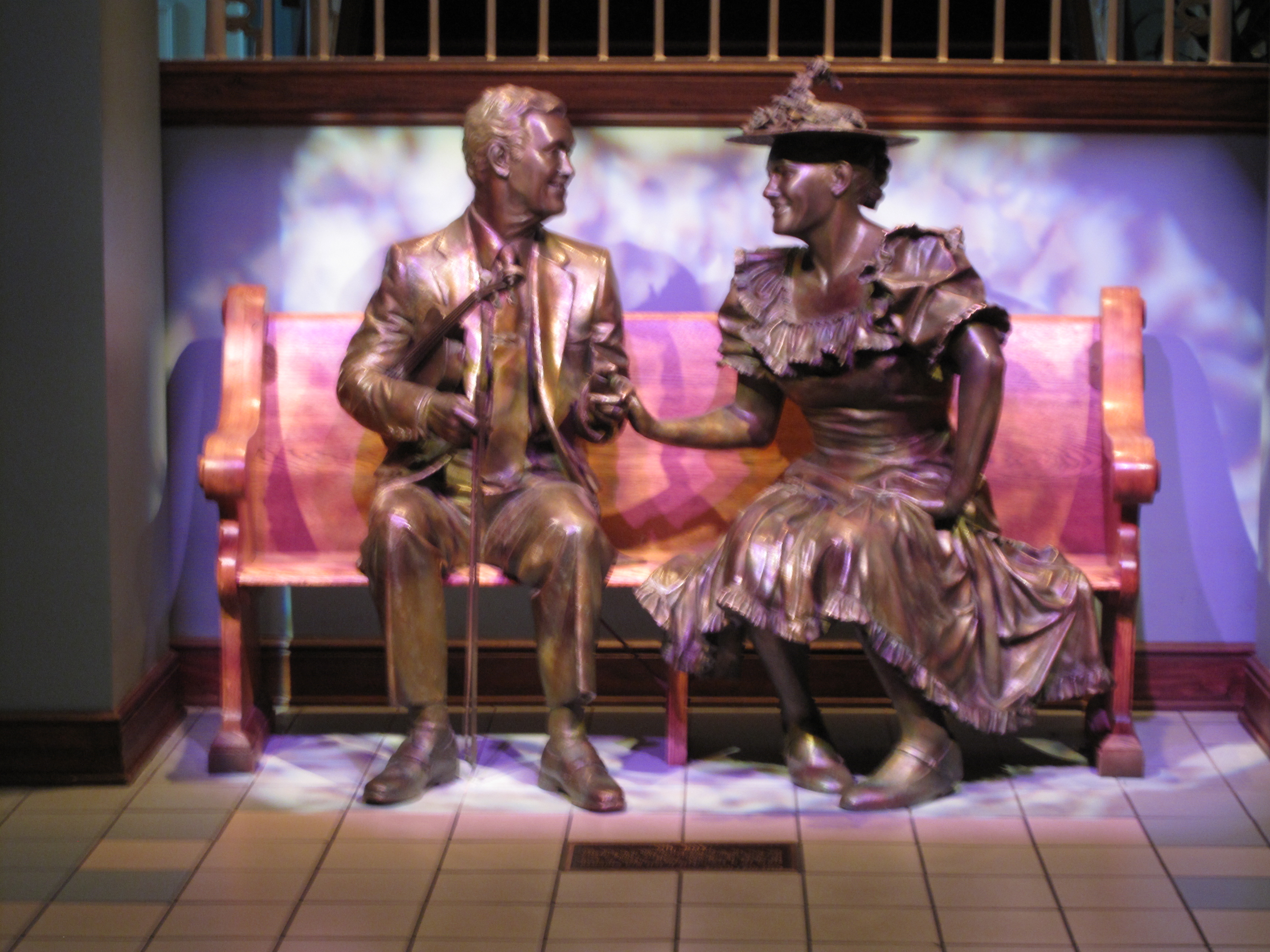 Roy Acuff and Minnie Pearl bronze sculpture in Ryman Auditorium