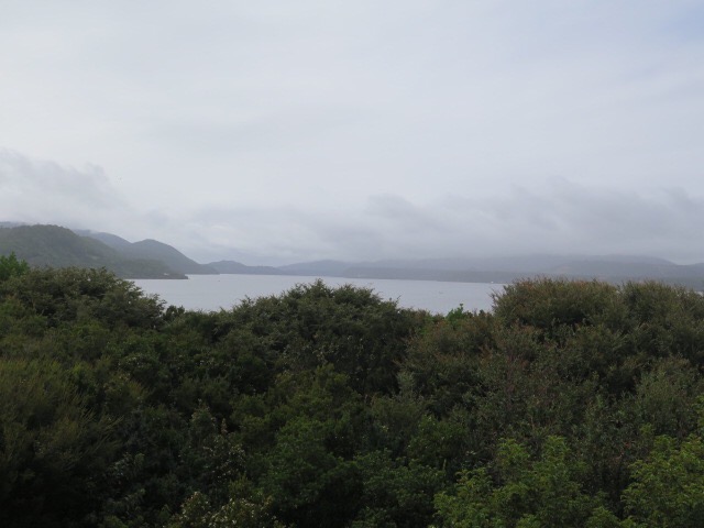 With our tour guide, Juna from Puehen Expediciones, we rode along the Pan American Highway from Castro to Chiloé National Park, located on the western side of the island. The park was established in 1983 and is in a temperate rain forest. In some areas, up to 200 inches of rain falls each year. We walked first through secondary forest – this area had not been protected before 1983 so much vegetation had been cut back before then. Next, we walked through marsh land, filled with grasses and ferns. Last, we explored primary forest, with moss covered trees and beautiful flowers. Some plants look like what we have at home, but they are not even related. One looks like holly, but with pretty red and yellow flowers that look like candy corn before fully opened. Another looks like magnolia, but is a nut tree.