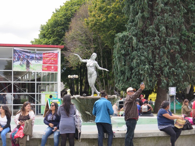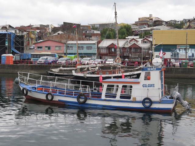 We enjoyed a delicious lunch, then headed back to town. Today is Castro Day, celebrating the day this city was founded, and the citizens of the town were out in force, enjoying the beautiful day. We visited the local square where kiosks were set up to sell alpaca and crafts. A stage was set up near the waterfront for an evening concert. A fireworks barge was set up in the water, but, sadly, we had to leave before any of the evening festivities started.