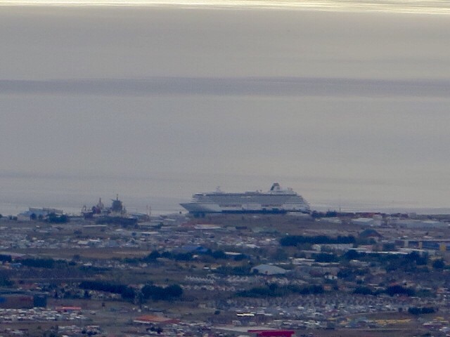 Shortly after the ship docked here this morning, we took a bus to Club Andino (The Andean Club,) then rode a chair lift to the top of the ski hill where we had beautiful views of the ocean and Argentina.