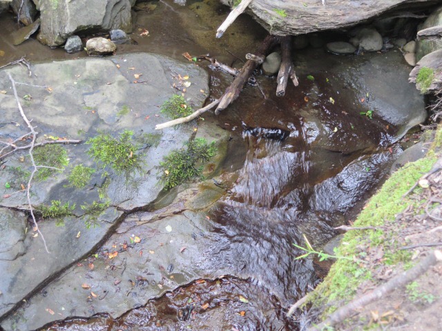 The path down was about 1.5 miles, and sometimes a bit challenging, as it had rained the night before. Besides mud, we had to be careful of horse apples that littered the trail in many places. We crisscrossed a brook on rickety wooden bridges, but we were never more than a foot over the shallow water, so there wasn’t any danger of getting hurt, just wet or muddy. With the uneven terrain, we got a great workout as well as being able to enjoy the woods that surrounded us.