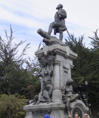 Back to the ship, where we slipped into something more comfortable. By the way, I think my boots weigh 20 pounds, and my down parka is like a sauna (great for Minnesota!) We headed into town to do a little looking around. Our first stop was at Plaza De Armas Muñoz Gamero, the center of town, where there were several crafts and textiles booths to check out. At the center of the park is a statue commemorating Ferdinand Magellan, or Hernando Magallanes, or Fernão de Magalhães, depending on whether you are English, Spanish or Portuguese. Apparently, if you kiss the toes of the Indian near the bottom, you are guaranteed to return to Patagonia.