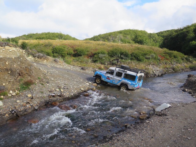 After our hike, we boarded a Land Rover for an exciting ride on muddy roads and across flowing streams. This is when we heard the admonition to watch our heads – several times. We stopped at one point to see a large beaver dam and several beaver huts, surrounded by dead fall. Each year’s new beaver crop build their own huts and so the devastation continues.