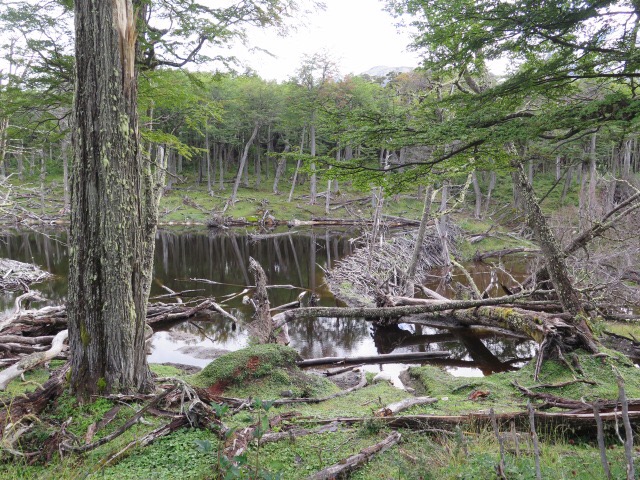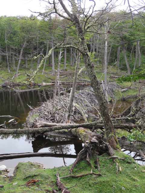 We saw several examples of damage by beavers who were introduced here in the 1940’s to try to develop a fur trade. Only 20 were originally brought here, but, with no natural predators, they now number about 100,000. The fur was not marketable – it takes a colder climate for the beaver’s fur to become long and thinks. These beavers are destroying the Fuegian forests, which cannot regrow quickly enough to replace what the beavers take down.
