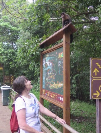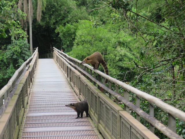 The park opens at 8 am, and we were up early to make the most of our day here. After checking the map, we headed out on the Paseo Superior (upper loop.) There is also a Circular Inferior (lower loop,) which we also walked. We foolish Americans thought Superior meant the better route, so we took it first. Actually, both loops were fabulous. Each one was about 1 mile long, and took 1.5 – 2 hours each to do them justice. This a rainforest, so very humid. That, plus a light rain at times, caused us to look like drowned rats by the end of our visit.
