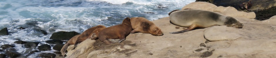 Both seals and sea lions enjoy the beaches of La Jolla, but today, we saw only sea lions. There is a difference. Seals have shorter front legs compared to those of the sea lions, and can only creep on land while the sea lion can raise its body and use its fins to navigate. The sea lion has visible ear flaps compared to the seal’s ear holes without flaps. Most noticeably, the sea lion is noisy, as was evidenced by several today.