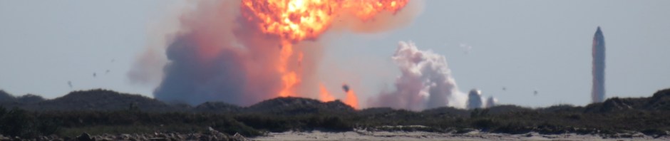 SpaceX’s plan was to test launch a prototype Starship SN9 (thank you, Mark, for providing this info.) The SN9 is 160 feet in height, and when boosters are added, it will be 390 feet. Like other SpaceX rockets, this one is designed to be reusable. The Starship goes straight up, then, when preparing to land, flips to horizontal – belly flop mode. This mode allows the rocket to drop more slowly, reducing the dependence on fuel to slow it down. As it nears earth, it flips back to vertical, and hopefully, lands on its feet at the original launch pad. The circled rocket is the one that was scheduled to launch today.