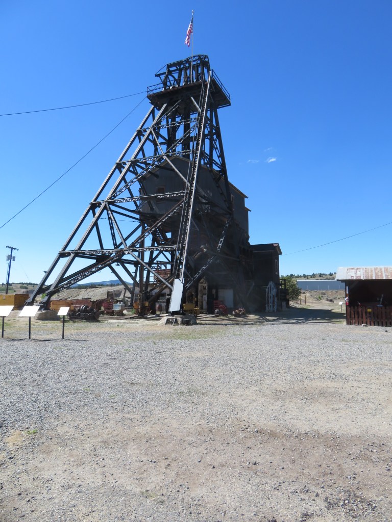 The Museum is located on a mine yard, the Orphan Girl Mine, where silver, lead and zinc were mined. Many artifacts remain at the site, including the Hoist House, headframe, ore bins, and rail cars. You can visit a re-creation of an 1890s mining town and take an underground mine tour. We’ve done a few in other locations, so passed that up today.