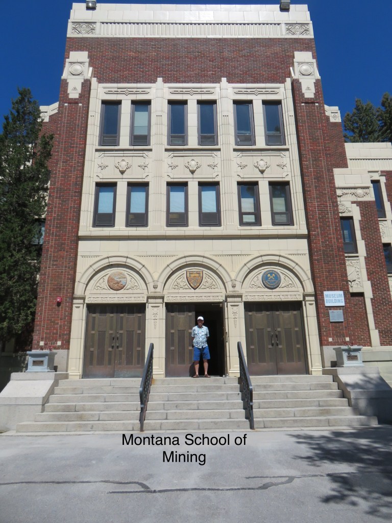 We arrived in Butte this morning, and first visited the Montana Mineral Museum at the Montana School of Mining. The school was founded in 1900, and the first artifacts acquired in 1901 for teaching purposes. Over the past 120 years, the number of items in their collections has grown from 177 to over 13,000 from all over the world, of which about 1,000 are on display. The museum is located on the college campus and is free to the public.