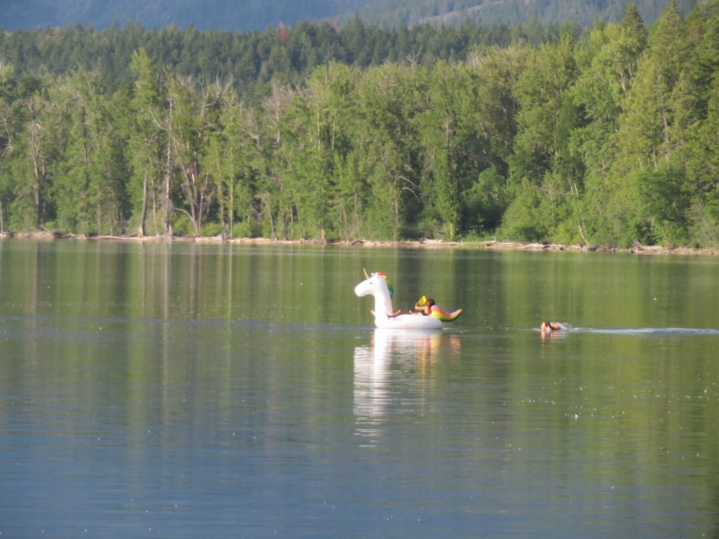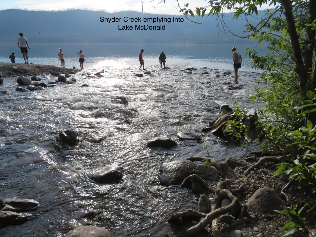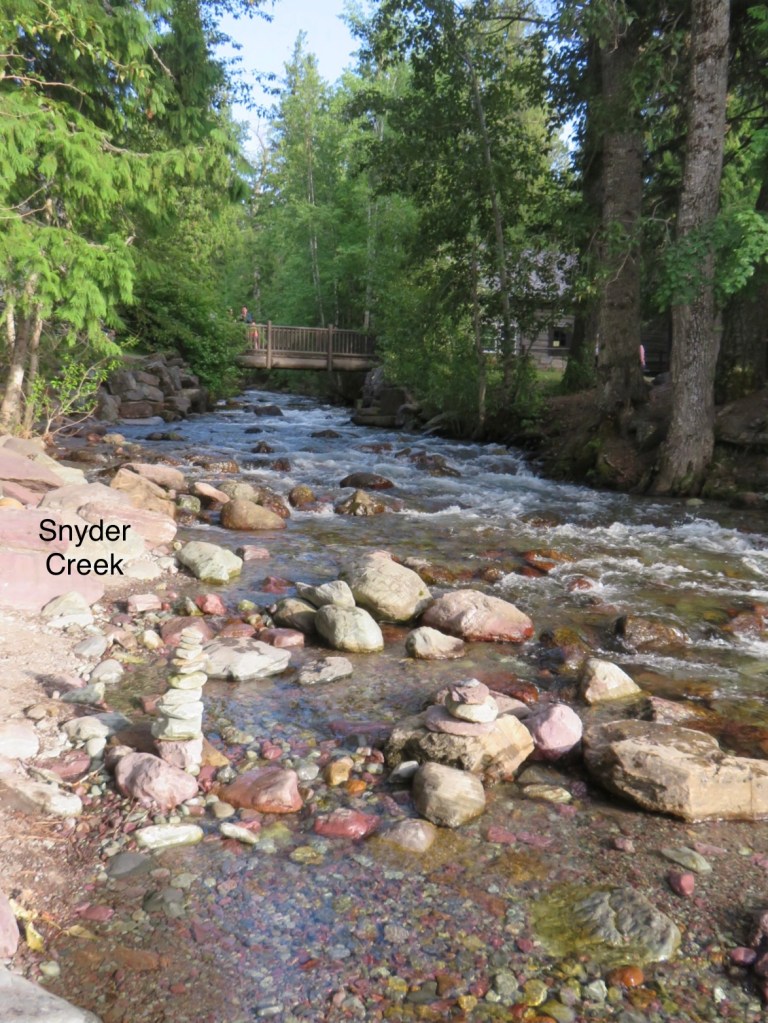 We paid a visit to Lake McDonald Lodge as well, where Snyder Creek empties into the lake. Although the water is cool, about 68 degrees right now, we saw several people swimming and floating on the water. It looked very inviting.