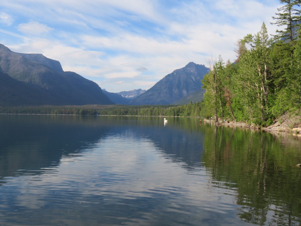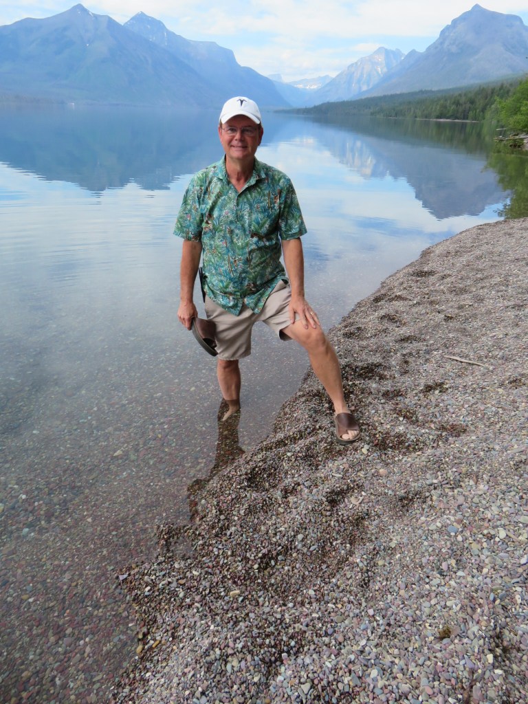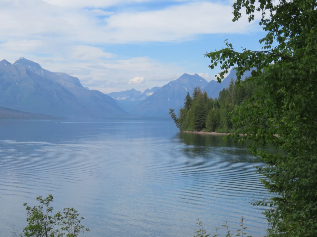 Lake McDonald was simply stunning, both the water and the surrounding mountains. Like Flathead Lake, the beaches are pebble, not sand. The water is very clear; it is an oligotrophic lake (relatively low in plant nutrients and containing abundant oxygen in the deeper parts), typical of a lake that is created after a glacier disappears.