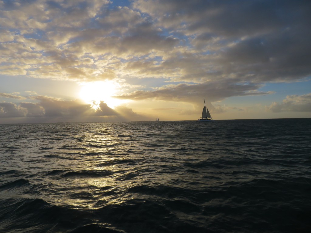 This evening, we took a sunset sail, actually a wine-tasting sail, with Danger Charters, that included the sunset over Key West. We sampled eight different wines, and needless to say, the evening was very mellow. Due to clouds, we didn’t actually see the sun set, but the sky was beautiful anyway.