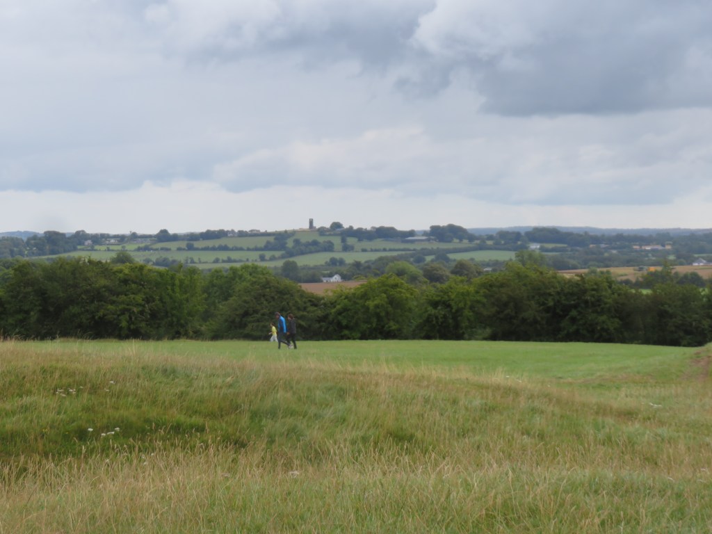The morning turned drizzly, as we approached the Hill of Tara, which was once the ancient seat of power in this country, considered to be the dwelling place of the gods. St. Patrick reigns here now, watching over us as we walked past a church and cemetery, to clamber up the hill.