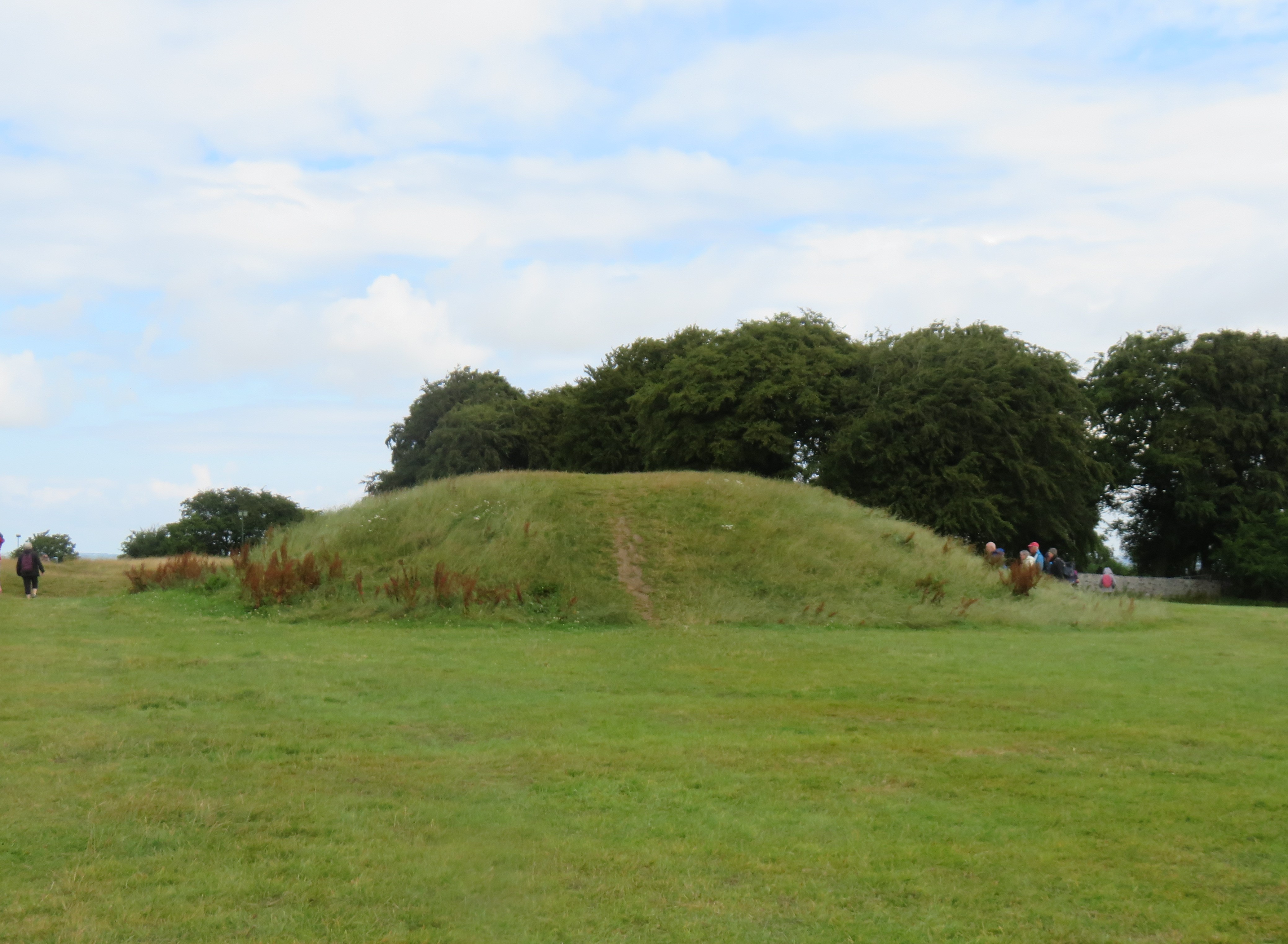 There are several mounds at this site, some that are open at the top. The west entrance is marked by two standing stones, a pillar and a shorter, round stone. It is not known what these stones signify.