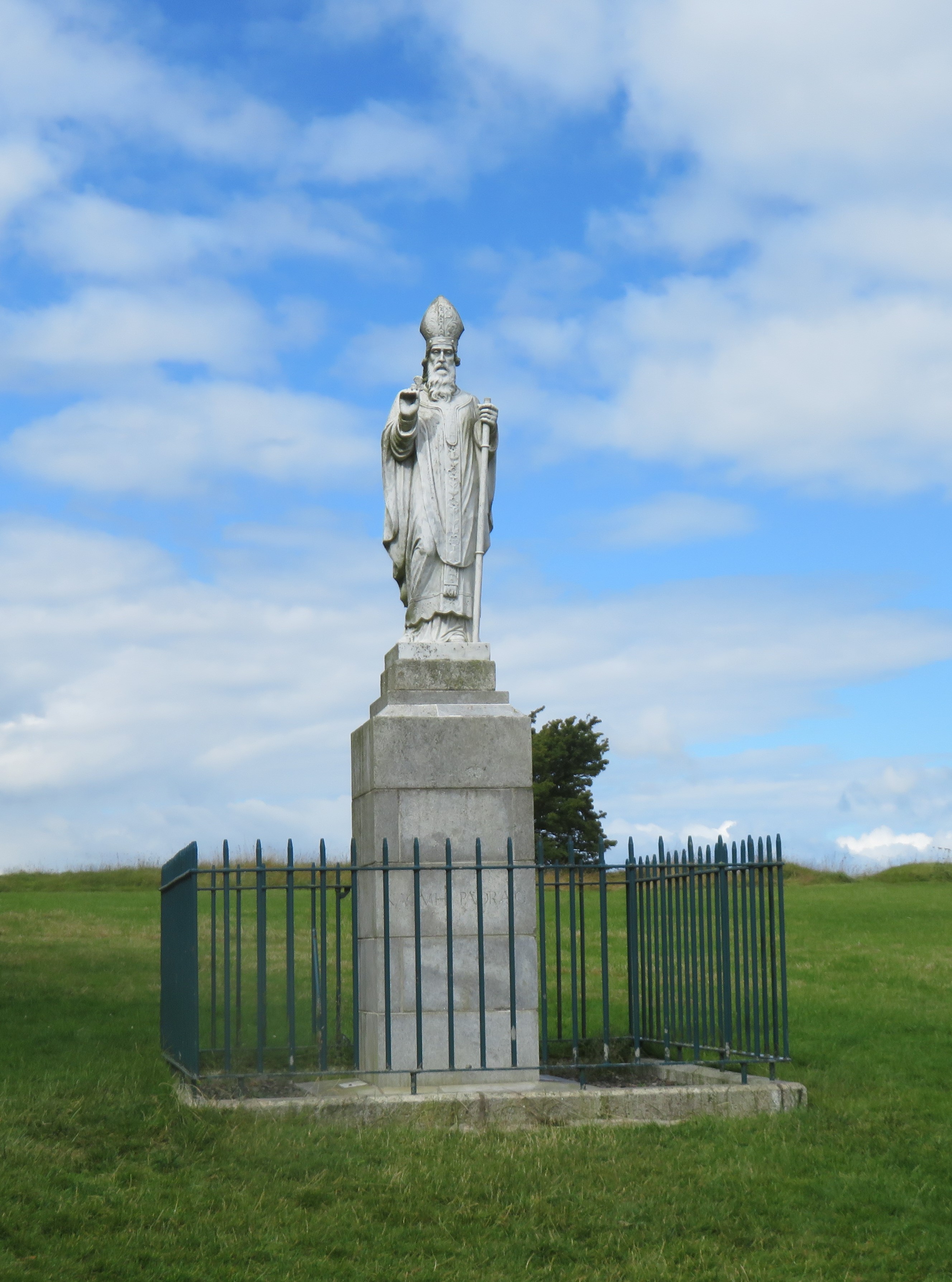 The morning turned drizzly, as we approached the Hill of Tara, which was once the ancient seat of power in this country, considered to be the dwelling place of the gods. St. Patrick reigns here now, watching over us as we walked past a church and cemetery, to clamber up the hill.