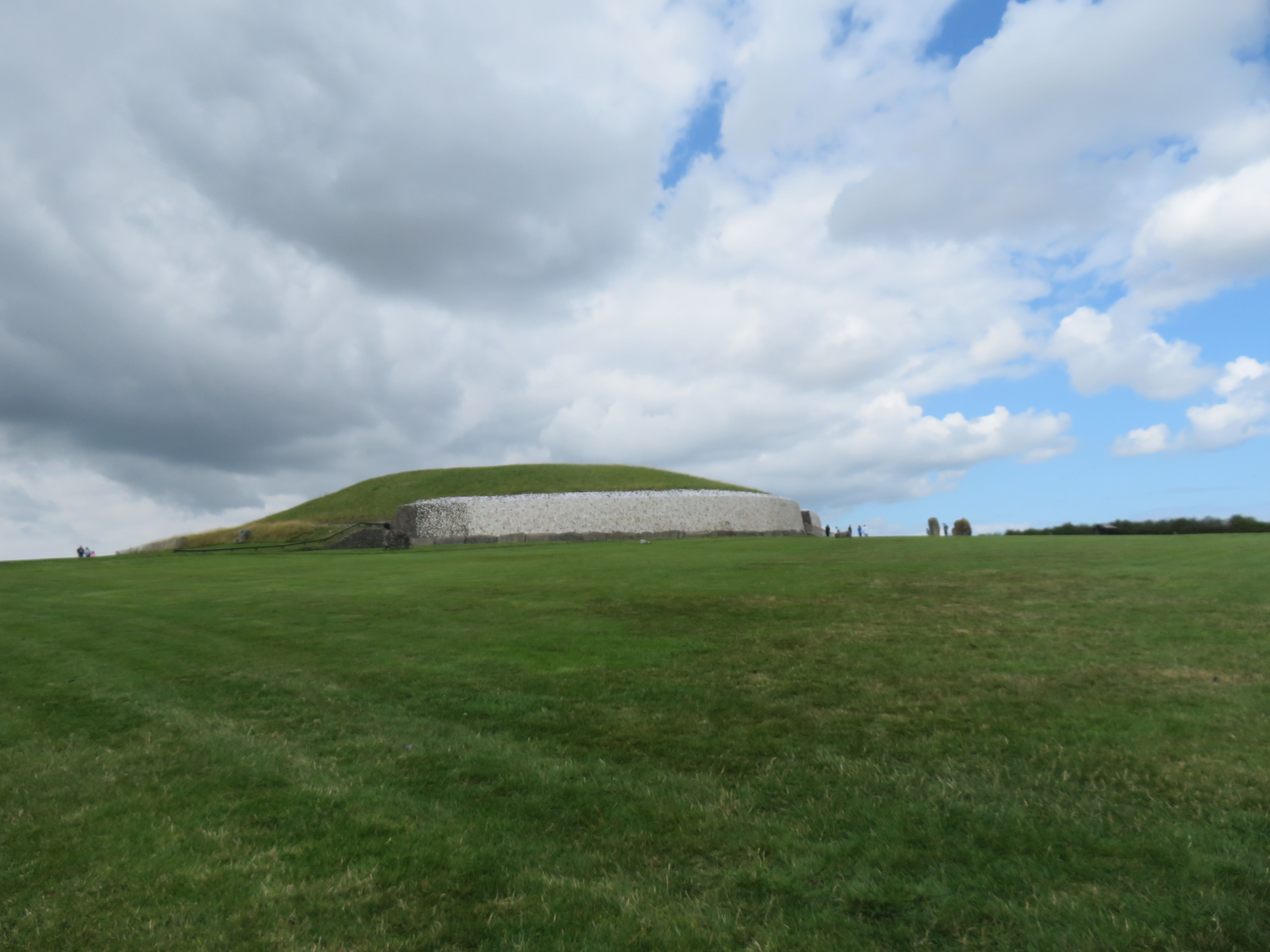 Fortunately, the weather cleared up quickly, and we headed next to Knowth, site of the Great Mound, another passage grave, built over 5,000 years ago. It is similar in size to Newgrange, and is surrounded by several smaller mounds. Knowth was designated a World Heritage Site by UNESCO in 1993. The mound is surrounded by 124 kerbstones, most of which have engravings. The site is known for having the largest collection of megalithic art in Europe.