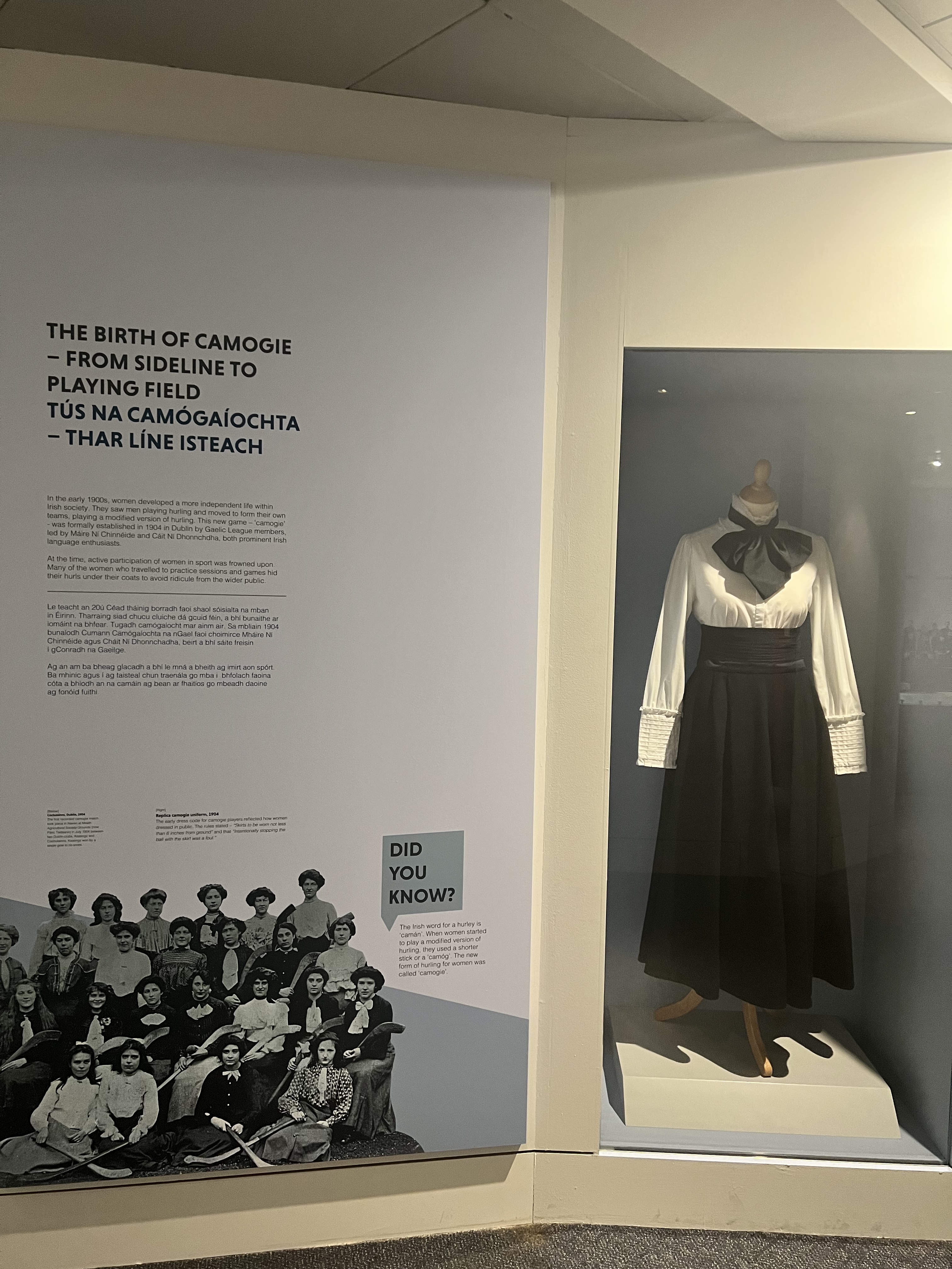 The women’s version of the game is called by the name of Camogie, based on the Irish word for a hurley, “camán.” Women use a shorter version of the stick, a camóg. The women’s game was established in 1904 in Dublin. Participation by women in sports was frowned upon. Women often hid their hurls (sticks) under their coats to avoid harassment from the public. The uniforms must have been hard to play in at the time, with “skirts to be worn not less than 6 inches from ground.”