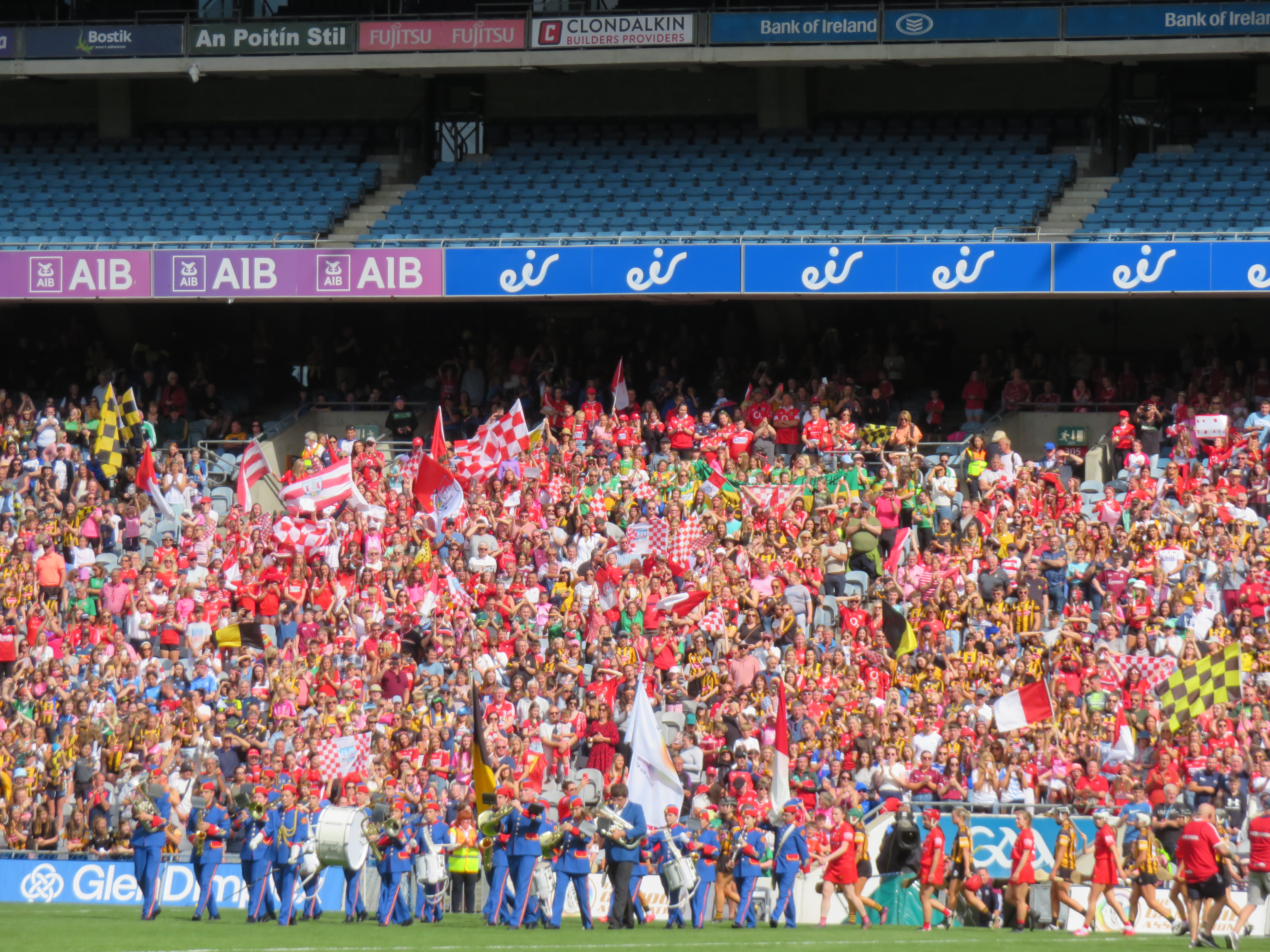 Tonight’s game was the final in the All-Ireland championships of Camogie. The teams are made up of young women who play for local community clubs; the best players are chosen to represent their counties in the All-Ireland championships.