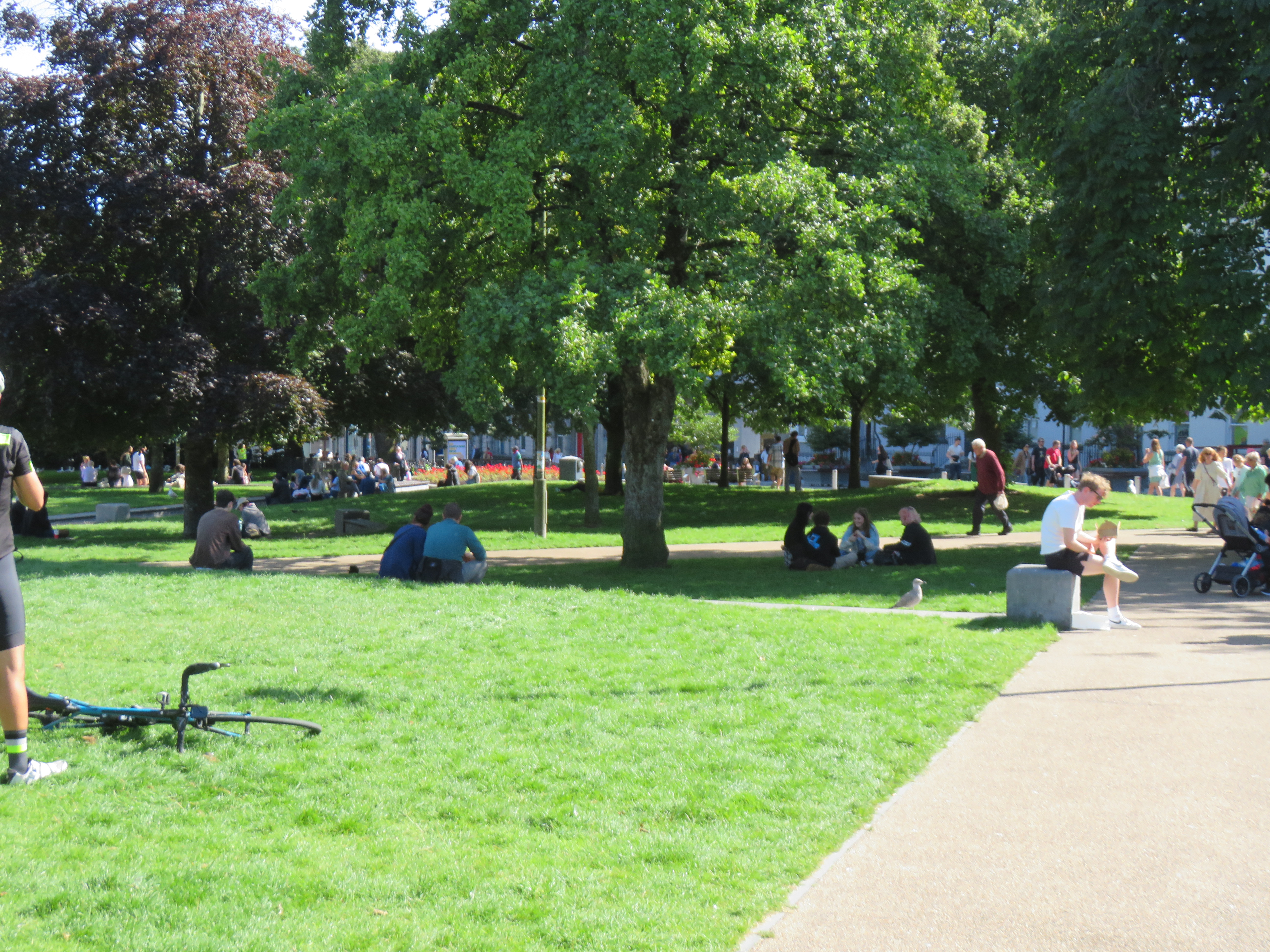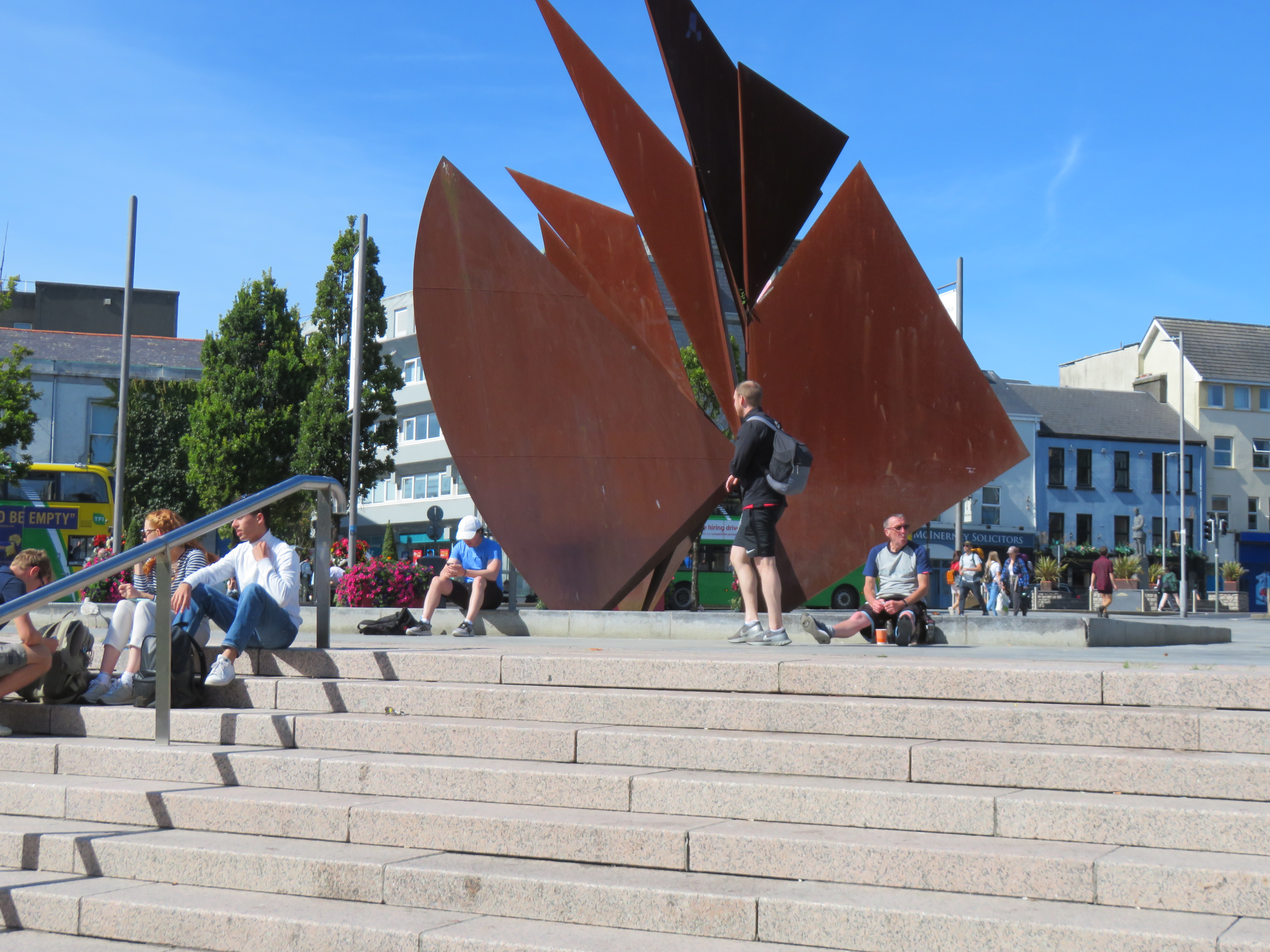 Across the street from the square is a sculpture of writers Oscar Wilde and Eduard Vilde. That is not a typo; Vilde was a writer from Estonia, and the bench was a gift from Estonia to the city of Galway when Estonia joined the EU in 2004. Why? There was never any connection or communication between the two men, but it is a nice looking, even welcoming piece.