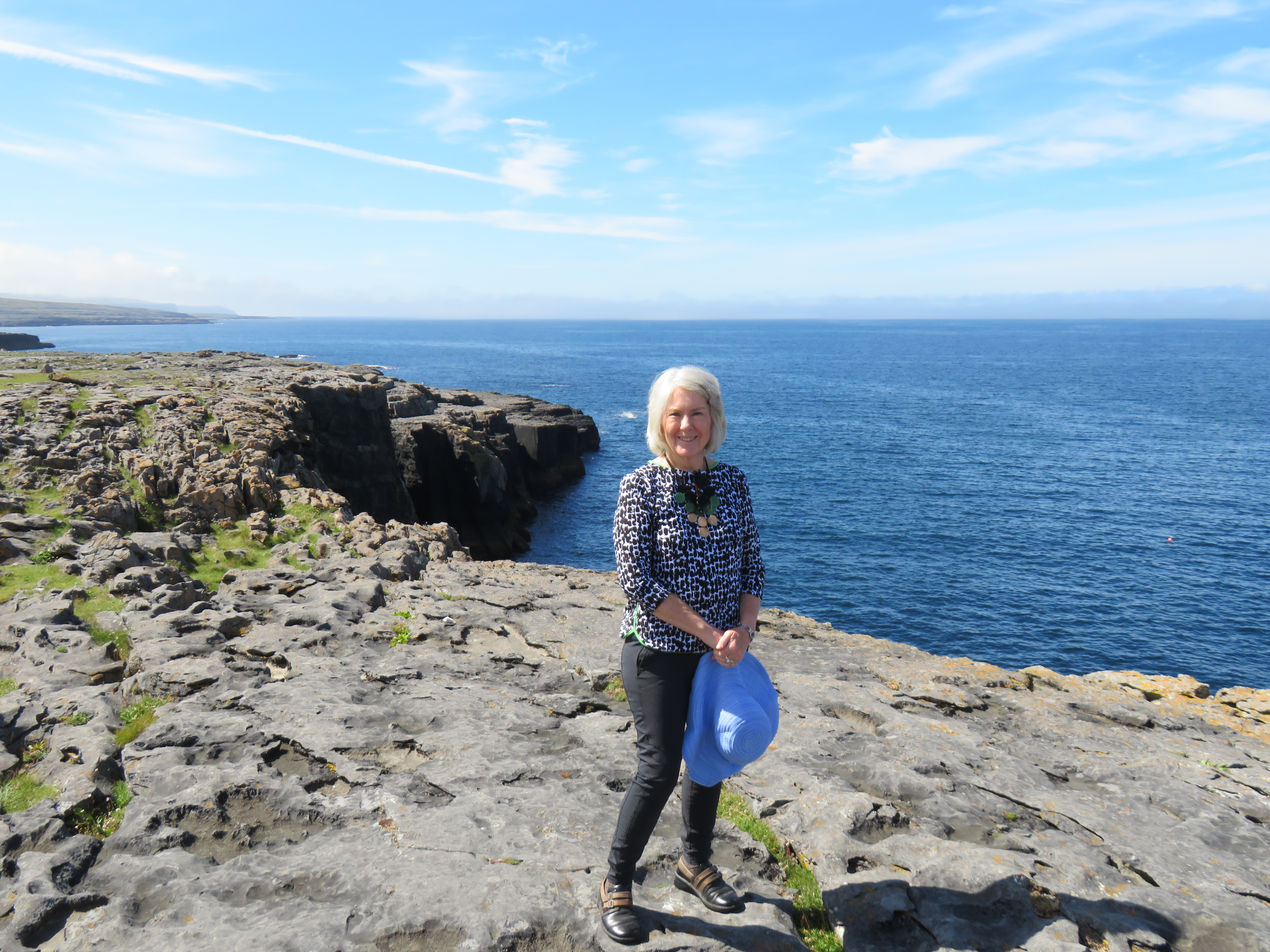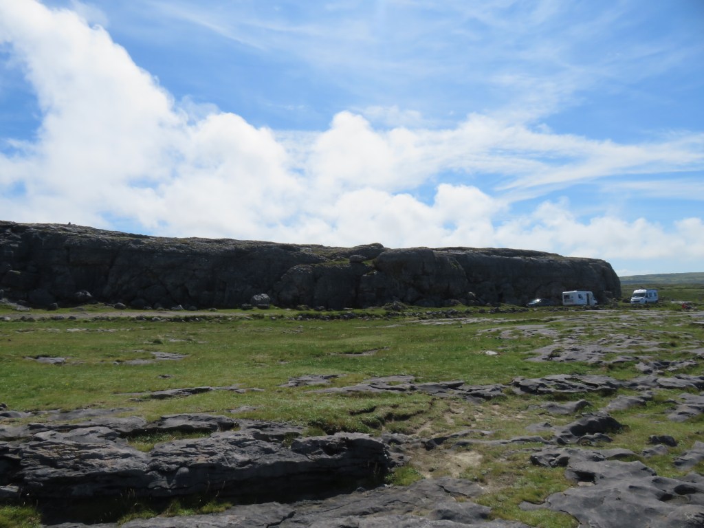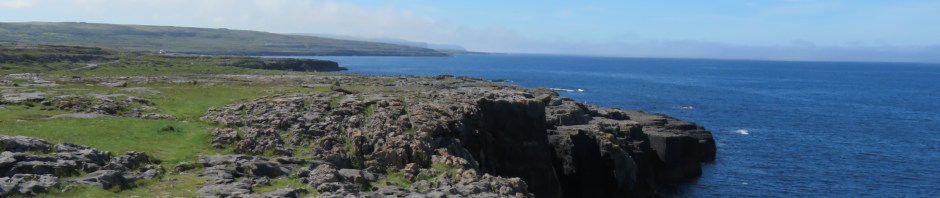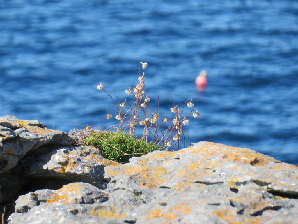 Then on to the Burren, part of the Burren & Cliffs of Moher UNESCO Global Geopark. The name comes from an Irish word “Boíreann” meaning a rocky place. It is indeed rocky. A few plants are able to take root in this landscape, creating a contrast to the gray limestone that juts into the bay.