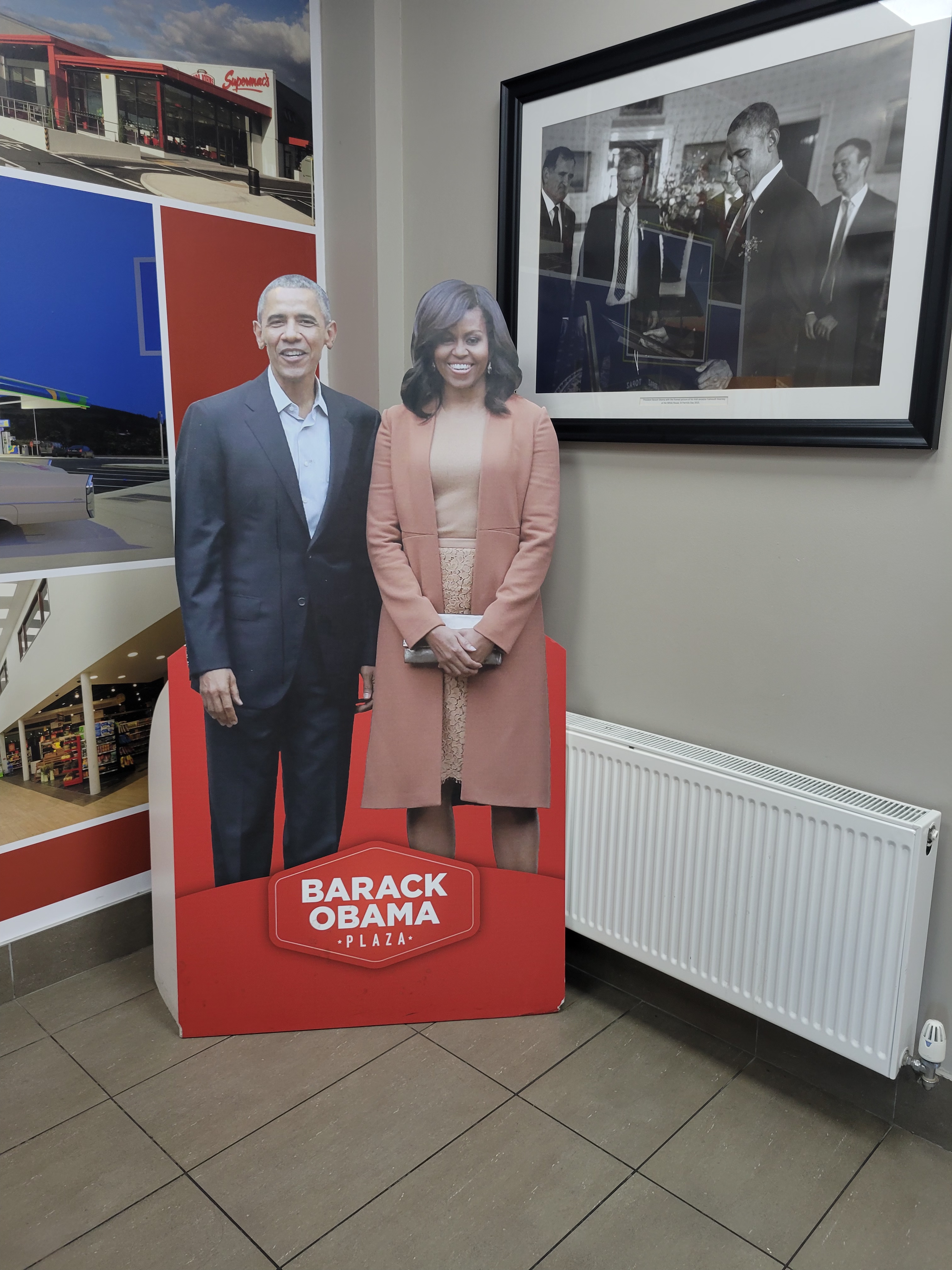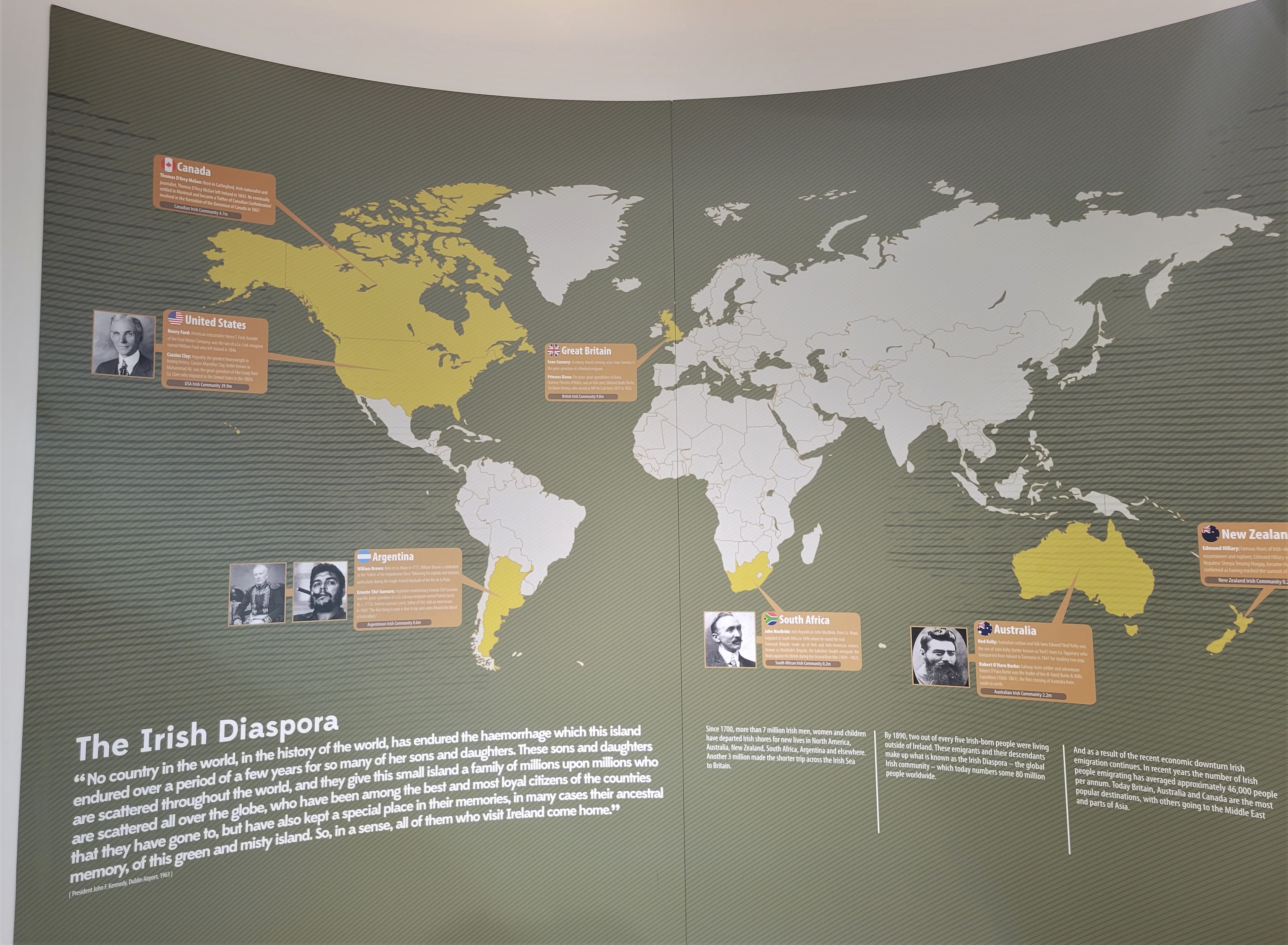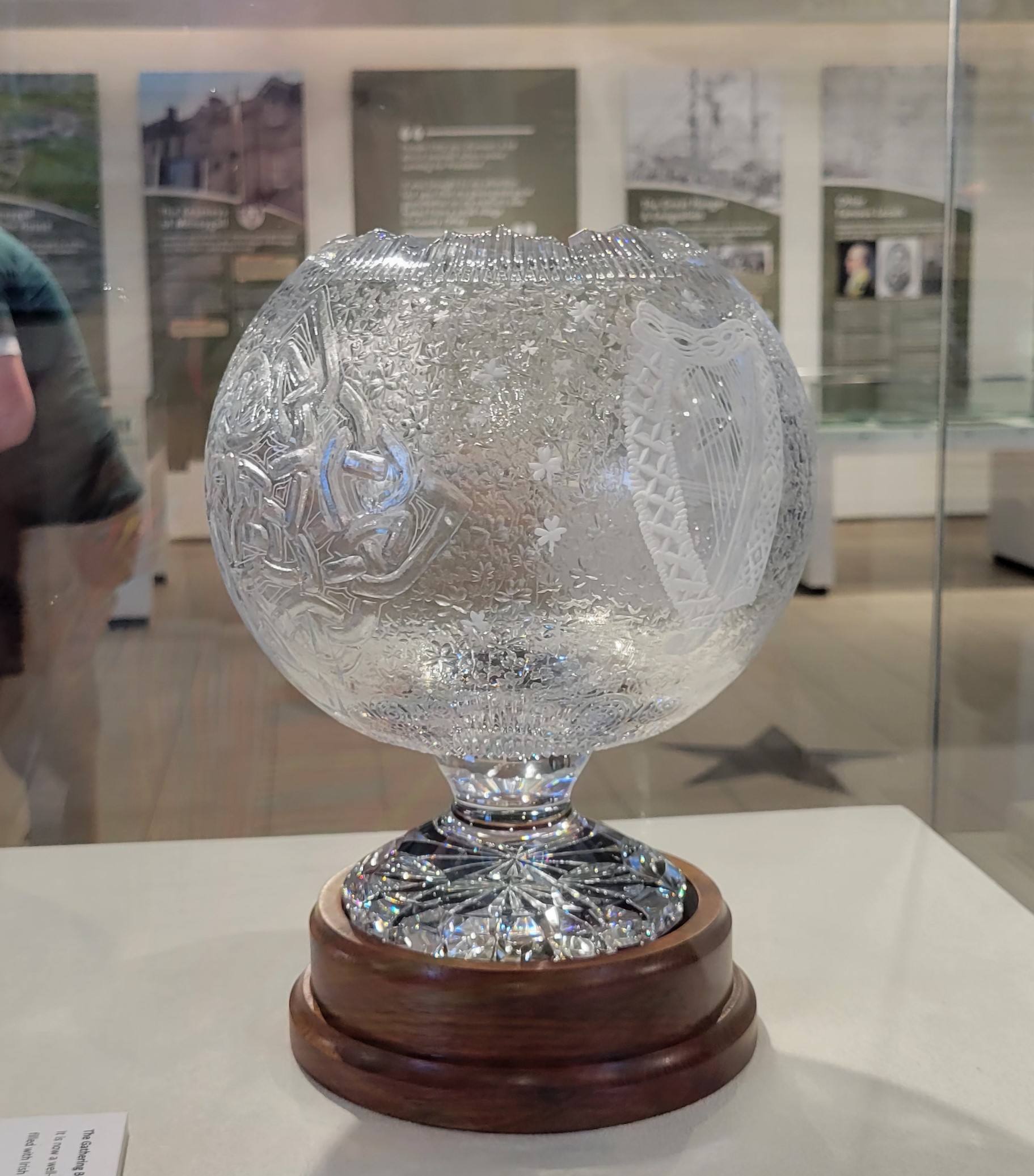 Imagine our surprise when we stopped at the Barack Obama Plaza, in Offaly, so Cash could fuel up the bus on our way back to Dublin. Whether or not you appreciated the former President, this was something so kitschy that it would be a shame to not check it out. The plaza has a display on the second level that is devoted to Ireland’s impact on American politics, specifically the Presidency. We all know that Kennedy and Reagan had Irish heritage, but they are joined by at least twenty more US Presidents who had Irish or Scots-Irish ancestry, from Andrew Jackson to Ulysses S Grant, Harry S Truman, Richard Nixon and both Bushes. I already knew about Obama from the EPIC Emigration visit. The Irish value this connection to the US; each year on St. Patrick’s Day, a Waterford Crystal bowl filled with Irish shamrocks is presented to the President of the United States.