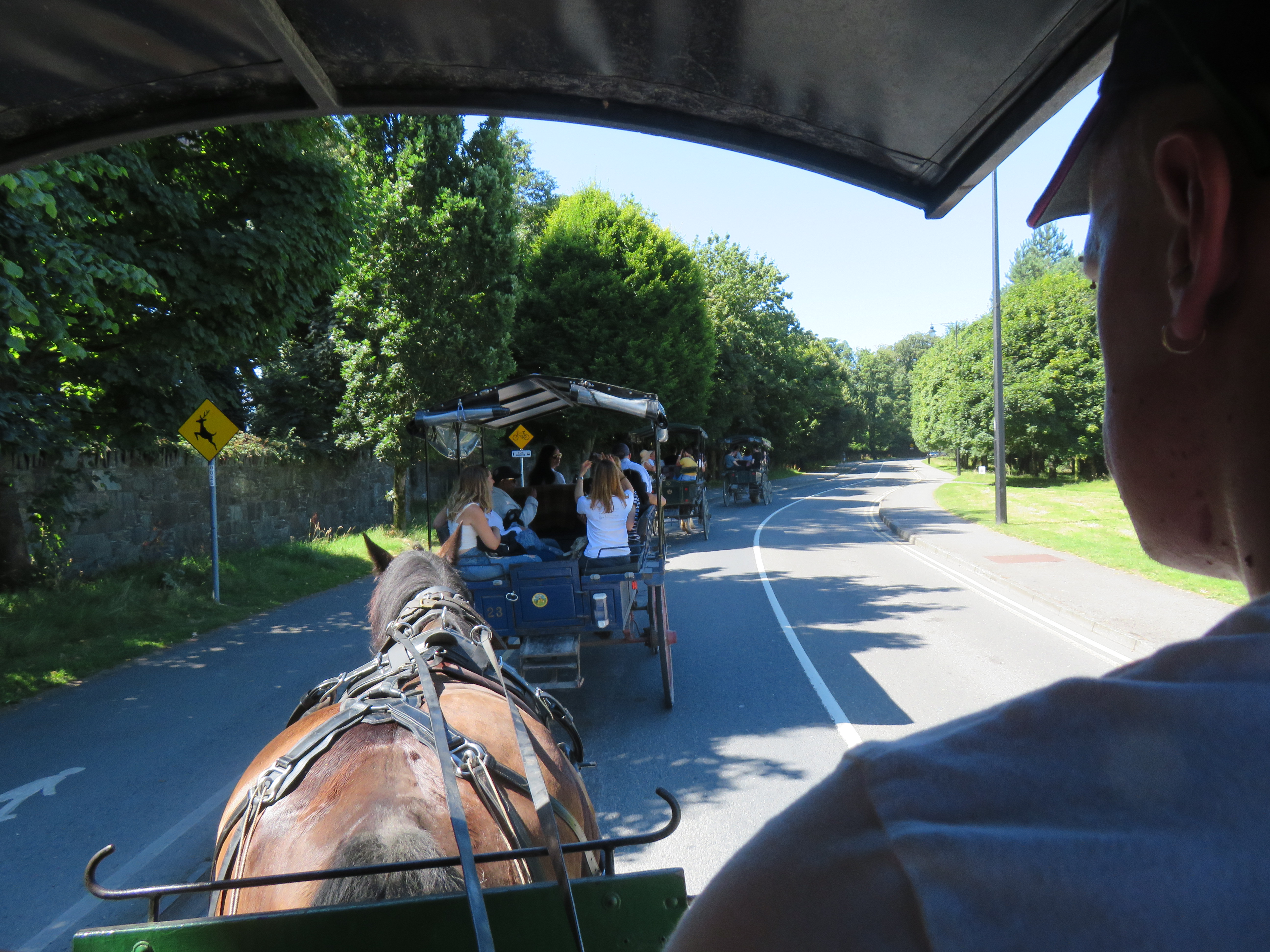 Next stop was Killarney City, where we boarded horse drawn wagons for a ride through Killarney National Park, or rather, a small part of the park. This was the first national park in Ireland, created in 1932 when William Bowers Bourn and Arthur Rose Vincent donated the Muckross Estate to the young Republic of Ireland. Since then, the park has been expanded and now covers over 25,000 acres, including the Lakes of Killarney (Lough Leane, Muckross Lake, and Upper Lake), oak and yew woodlands, and mountain peaks. The park was designated a UNESCO Biosphere Reserve in 1981.