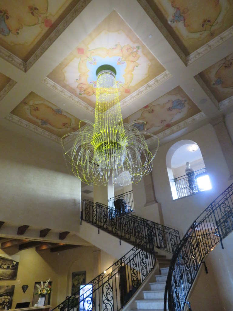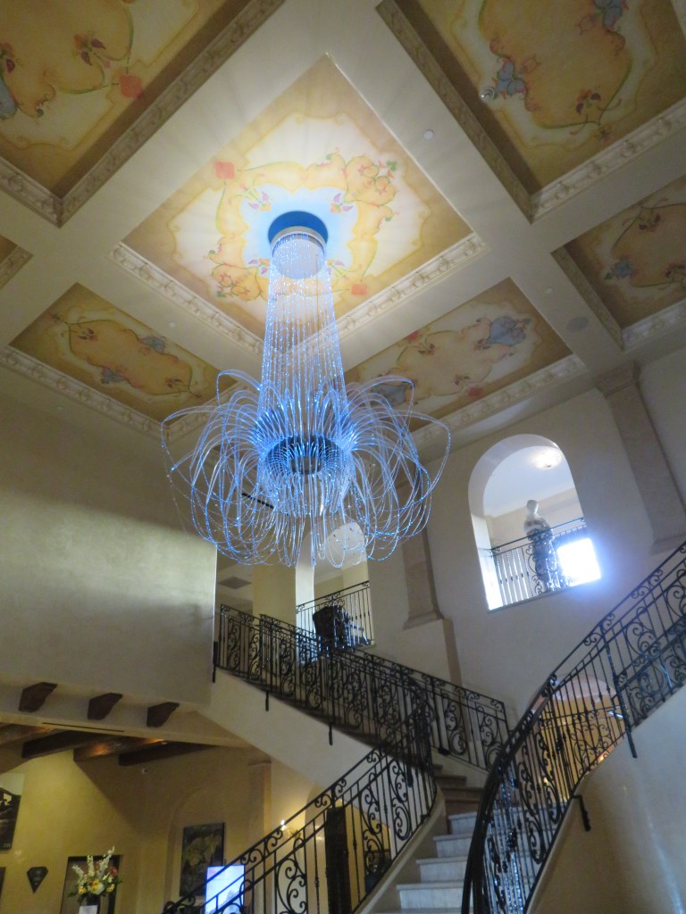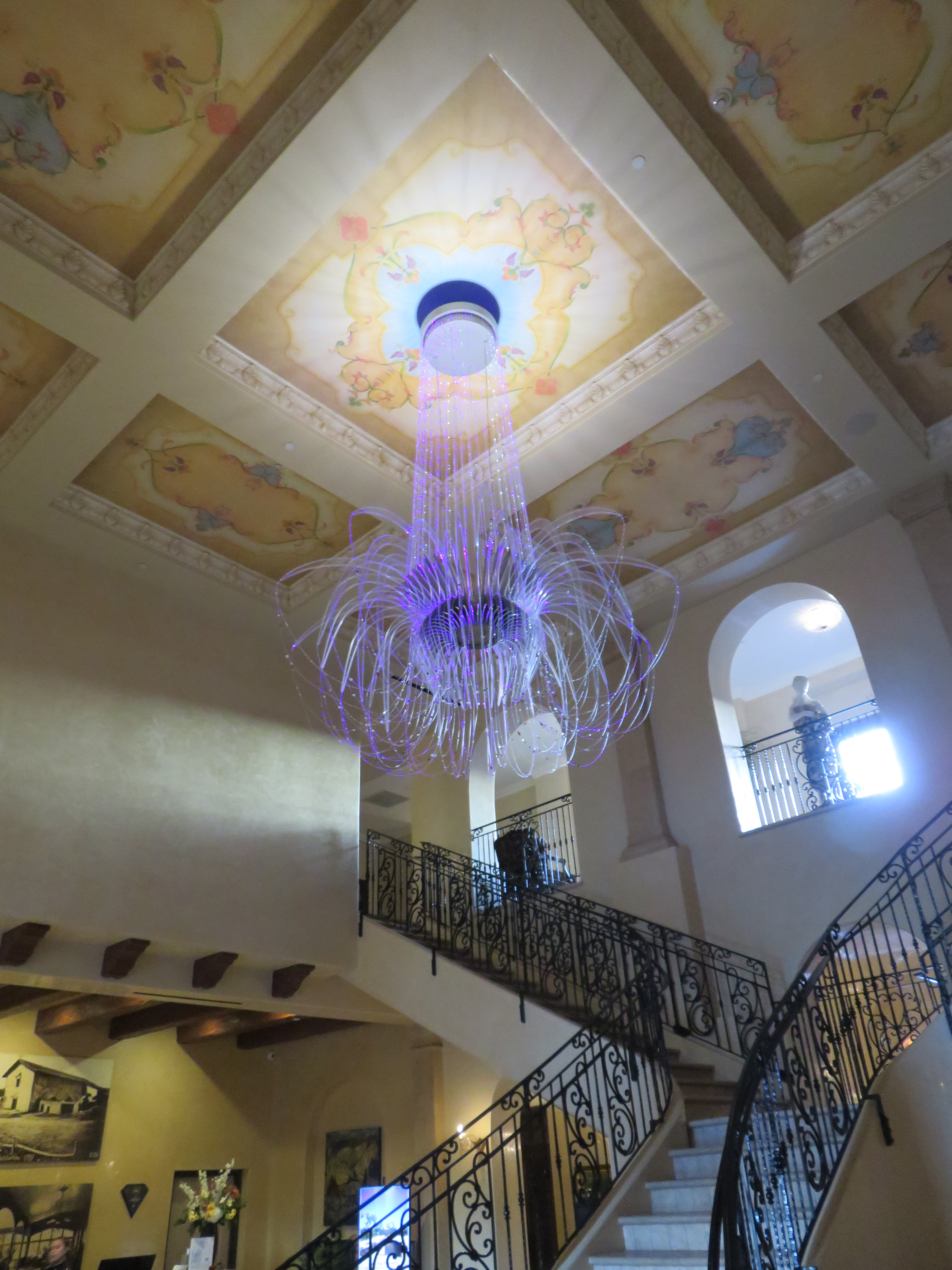 I was especially delighted by the chandelier in the entryway. Using LED light technology, it morphed from one color to another.