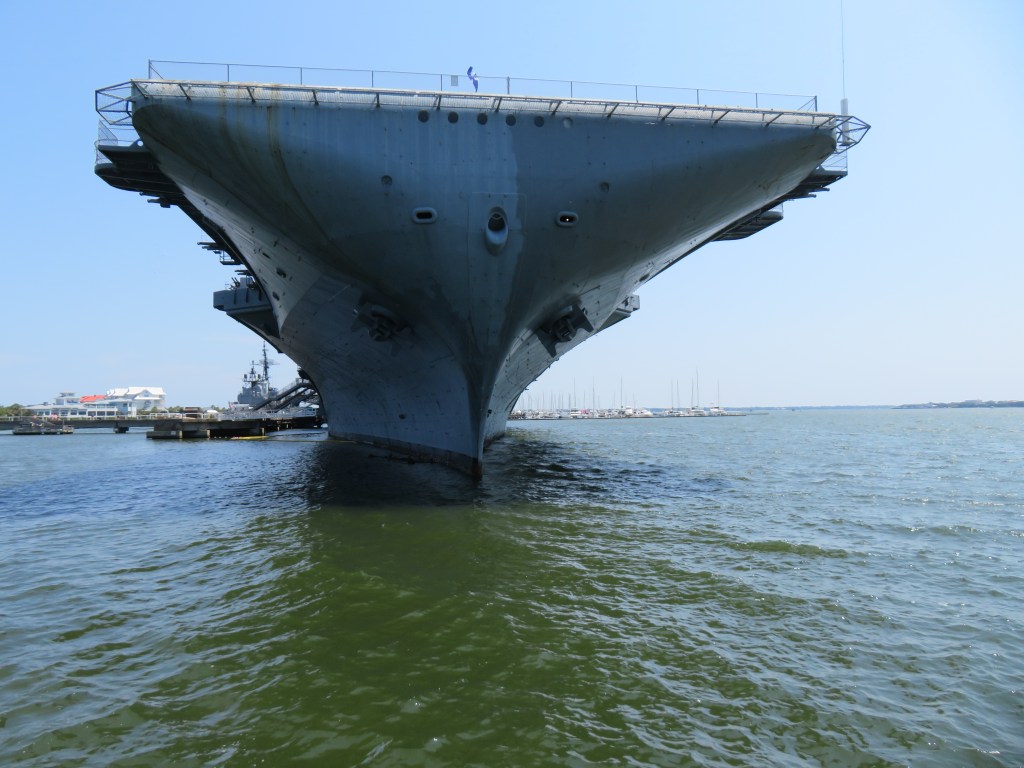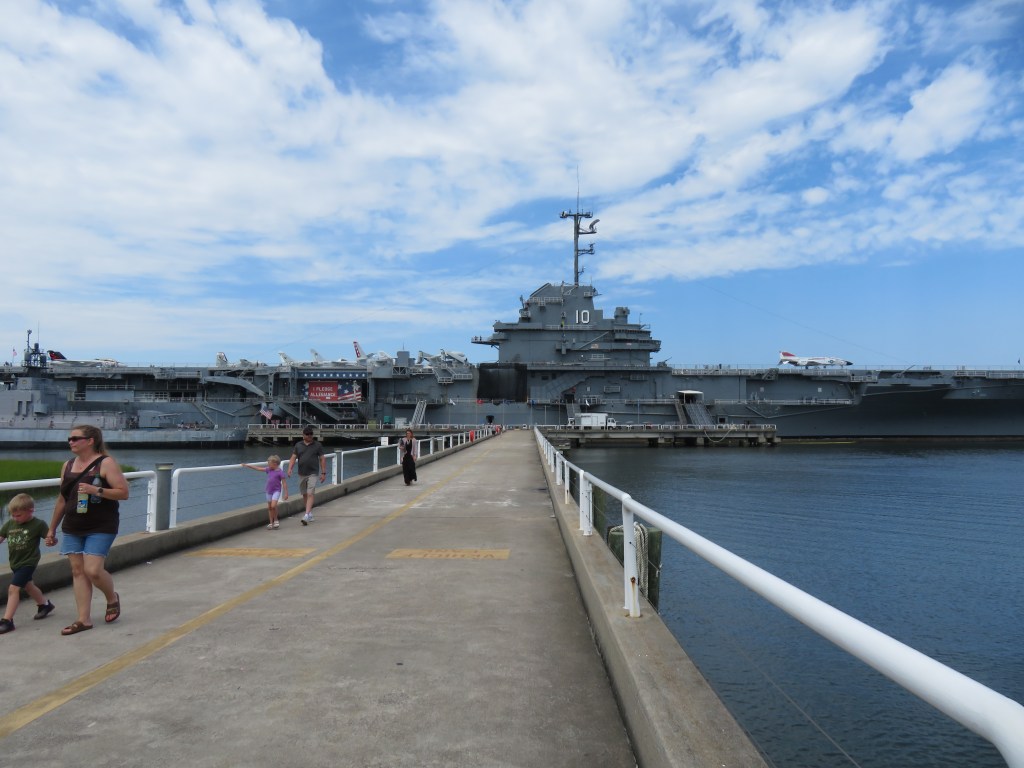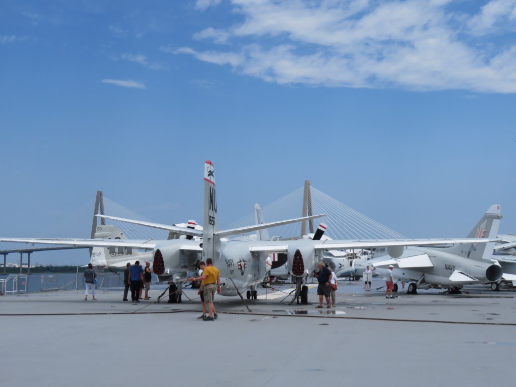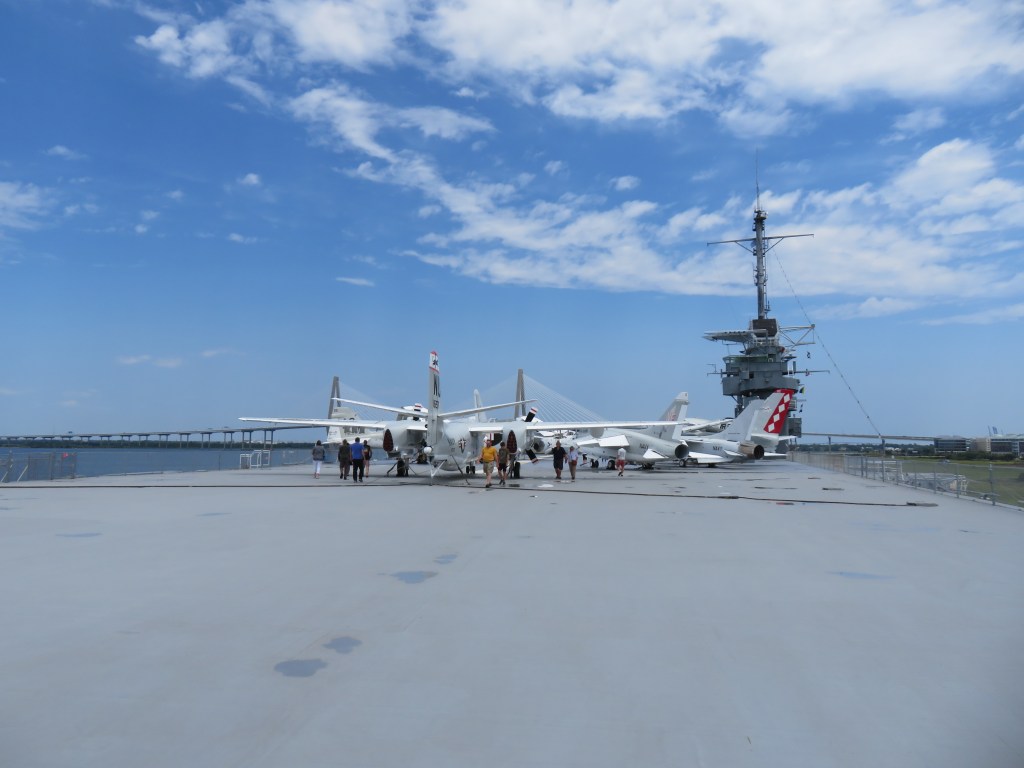 We also toured the USS Yorktown, docked at Patriots Point in Mount Pleasant. This aircraft carrier was built during World War II, and was named after a former USS Yorktown was sunk at the Battle of Midway. The Yorktown participated in several campaigns during WWII, the Korean War, and the Vietnam War, and she served as a recovery ship for the 1968 Apollo 8 space mission, before being decommissioned in 1970. She appeared in two movies: “Tora, Tora, Tora,” about the Japanese attack on Pearl Harbor, and a scifi film “The Philadelphia Experiment.”