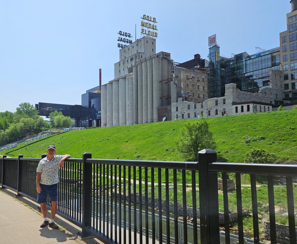 Minneapolis’ location on the Mississippi made it a good home for milling operations, which harnessed the river’s energy to power their mills. At one time, Minneapolis produced over 20% of the nation’s flour. There were more than twenty flour mills at one time, the largest of which were the Washburn-Crosby Company (part of the future General Mills), the Pillsbury Company, and the Northwestern Consolidated Milling Company. In 1880, Washburn-Crosby’s flour won a gold medal at the first Millers International Exhibit in Cincinnati, Ohio. Their Superlative Flour brand was renamed Gold Medal. Remains of some of the old mills can still be seen on the river banks in downtown Minneapolis, near the Mill Ruins Park.