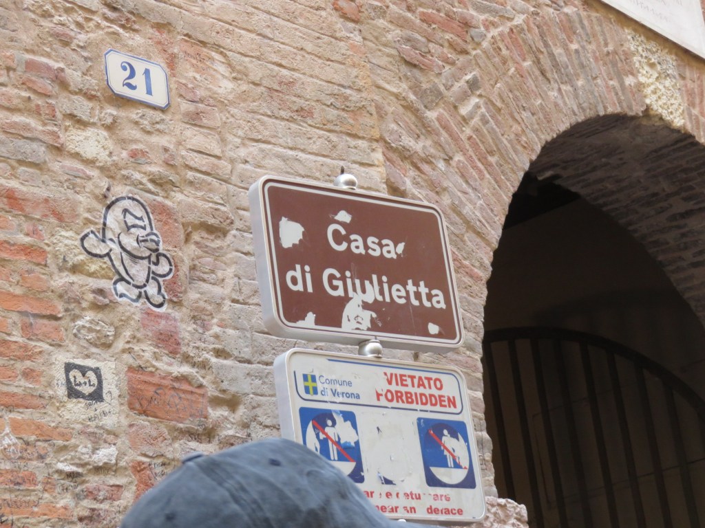 This UNESCO World Heritage Site is home to two of William Shakespeare’s plays: “The Two Gentlemen of Verona” and “Romeo and Juliet.” During a guided tour, we visited the balcony that is said to be the one Juliet stood on in the play. However, there was no reference to a balcony in Shakespeare’s original play – Juliet stood at a window. Later adaptations added the balcony. Also, the balcony we saw today was built in the 1930s for the 1936 film of “Romeo and Juliet.” I suppose it is more romantic to imagine a love-struck young girl standing outside on a balcony, rather than leaning out of a window.