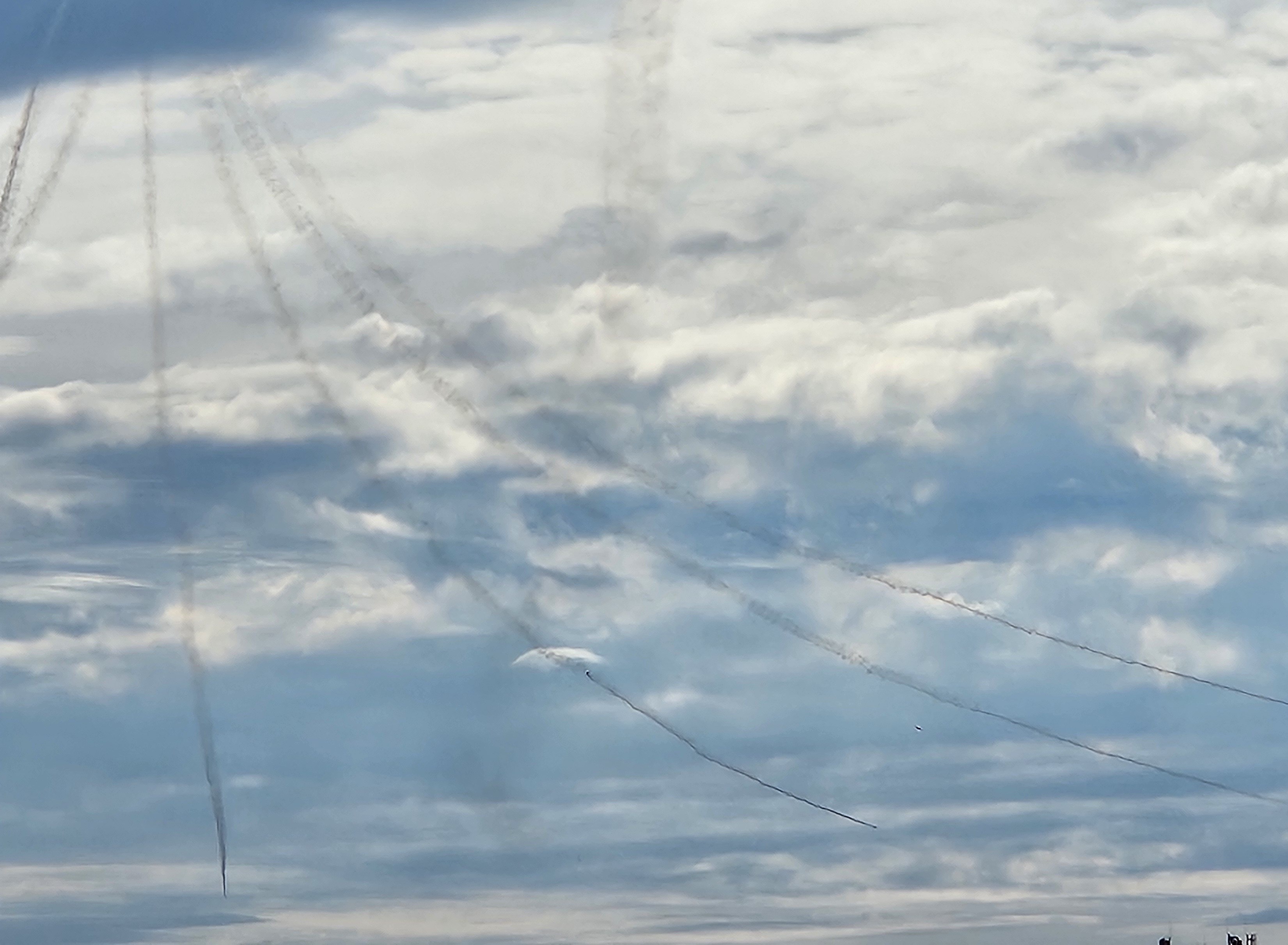 At breakfast this morning, I just happened to look up in time to see several jets flying in formation over the city of Zadar. It was the “Wings of Storm,” the Croatian Air Force acrobatic display team, similar to the US Navy’s Blue Angels. It appeared they were practicing their maneuvers this morning, flying loops and swoops, as well as flying straight up into the clouds. They were using colored smoke to mark their paths. I believe there were six jets in the pack.