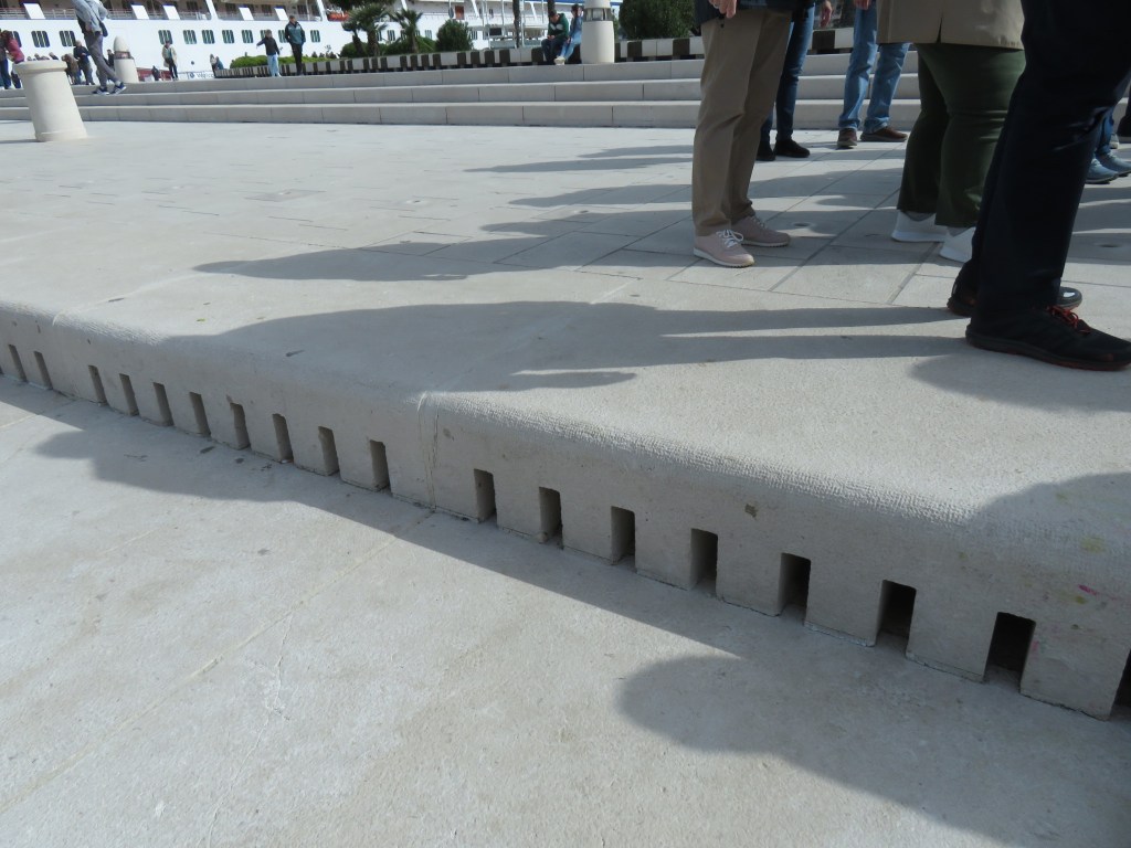 Next to the dock in Zadar is the Sea Organ, an architectural sound art feature on Zadar’s coastline. Tubes are located underneath large marble steps, and sea waves cause the musical tones that reverberated around us. This feature was designed by Nikola Basic as part of a redesign project in 2005.