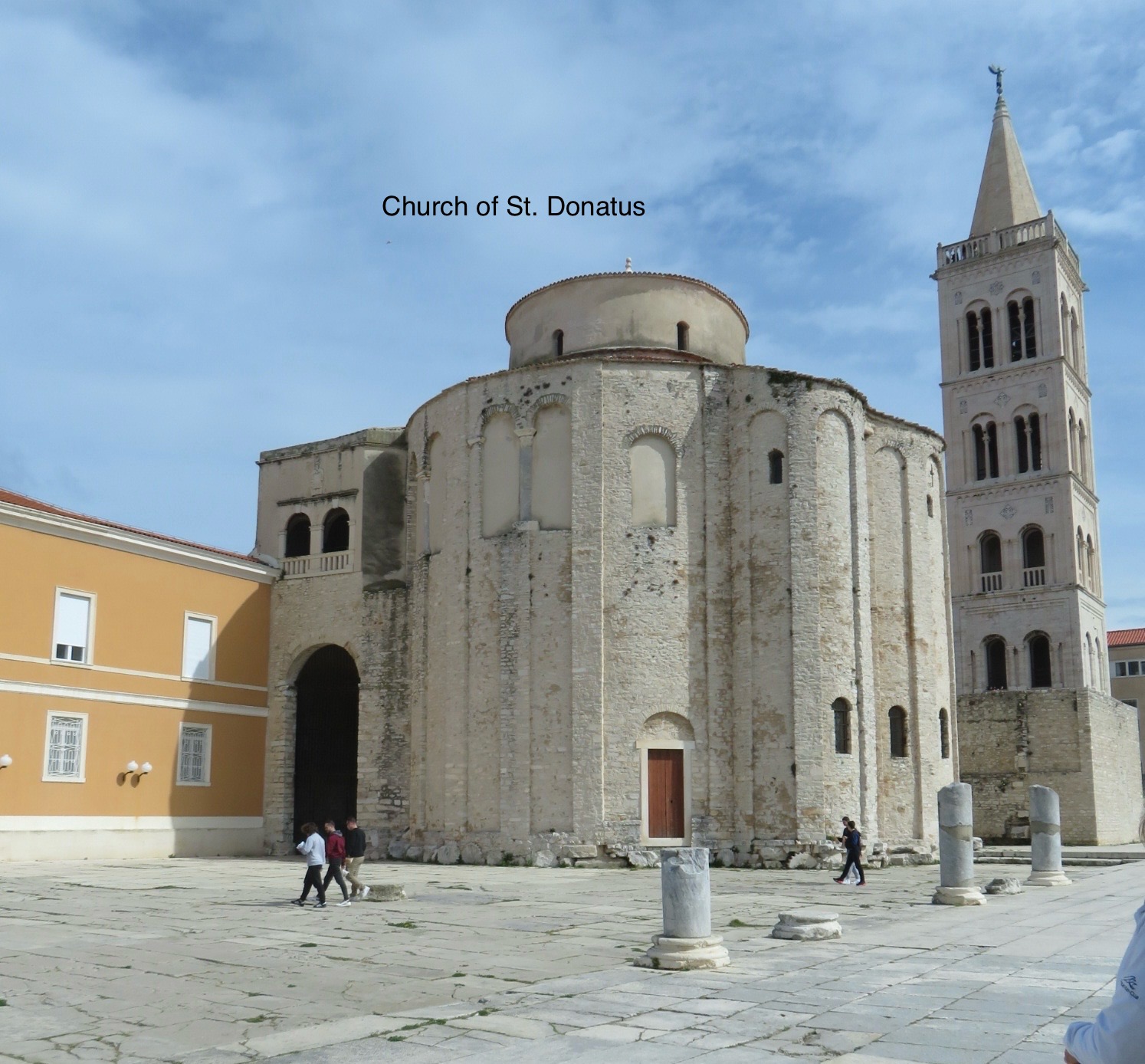 The Church of St. Donatus dates to the 9th century. Donatus was a bishop and diplomat for the city-state of Zadar. He is credited with the construction of the church. This circular church is typical of the the early medieval age in Dalmatia. In addition to its initial use as a church, it has served as a warehouse, an archaeological museum, and currently as a concert venue for the annual Festival of Medieval Renaissance Music.