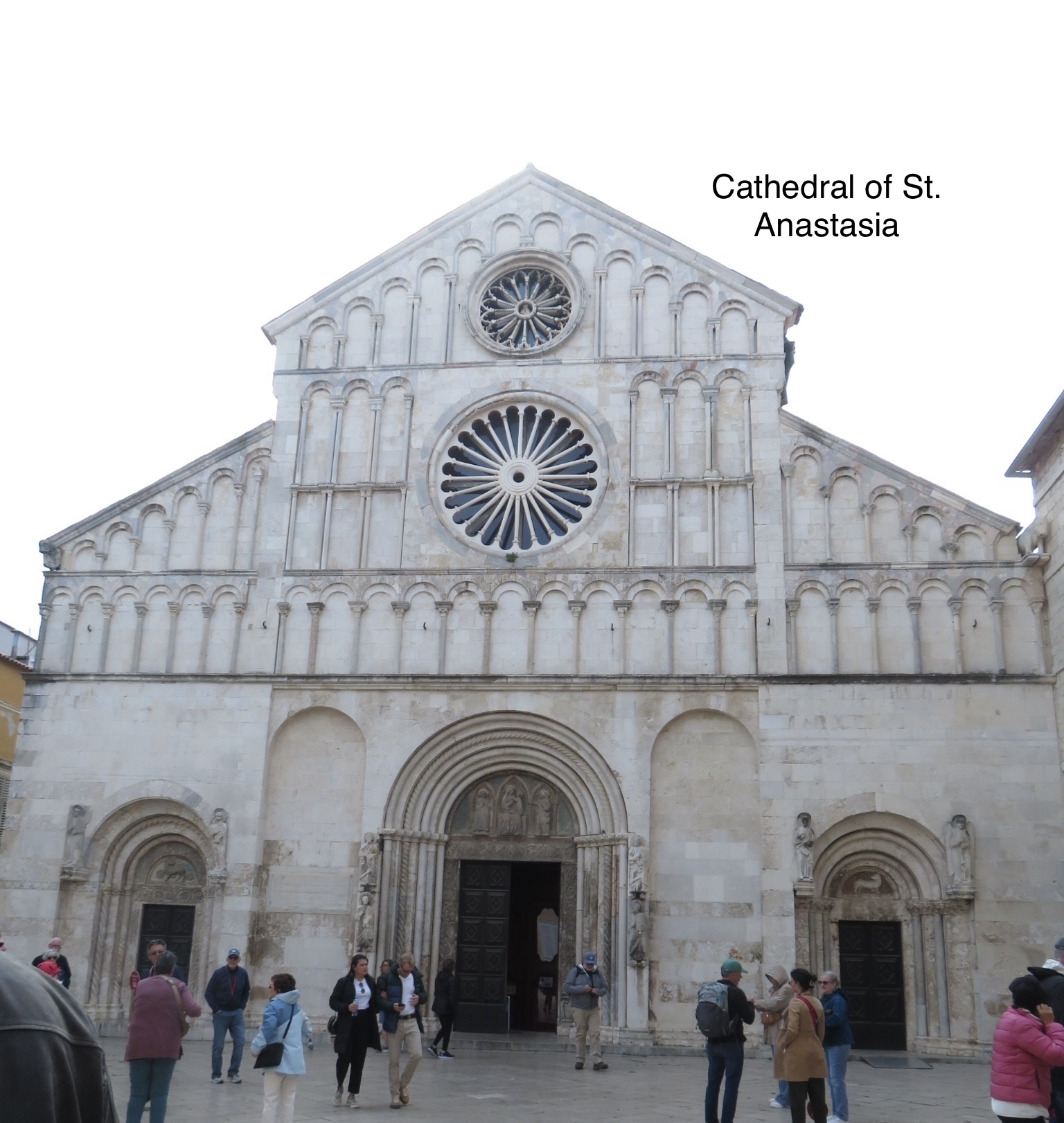 On our walking tour of Zadar, we walked through the Roman Forum, which was constructed between the 1st century BC and 3rd century AD, and is now surrounded by churches, including St. Donatus, the Cathedral of St. Anastasia and St. Mary’s Church. Although we could go inside, no photos were allowed.