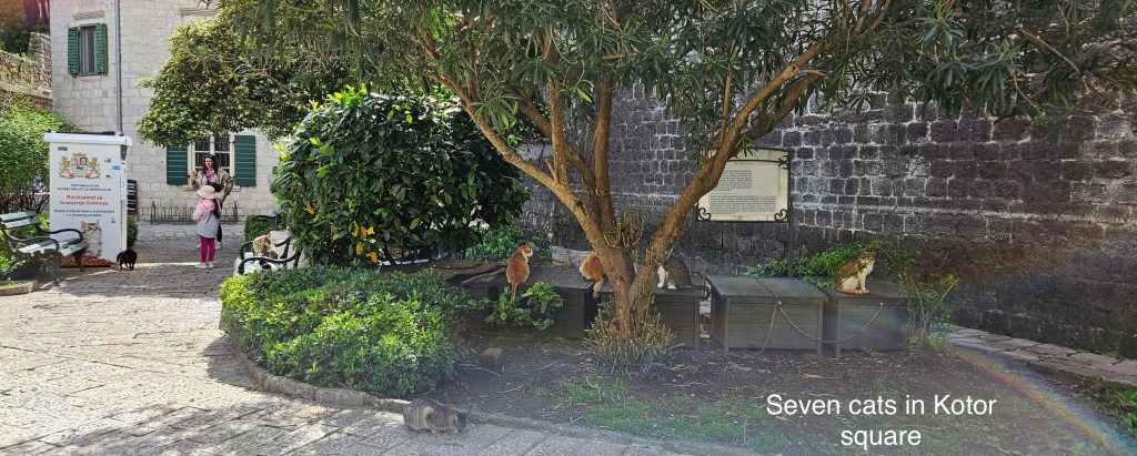 We did not, however, visit the Cat Museum. Kotor loves its cats; they are everywhere! Signs outside the museum proclaim that they feed the cats daily. Do those cats have homes? Or do they disdain that sort of conformity (being cats after all,) and simply rely on the kindness of strangers.