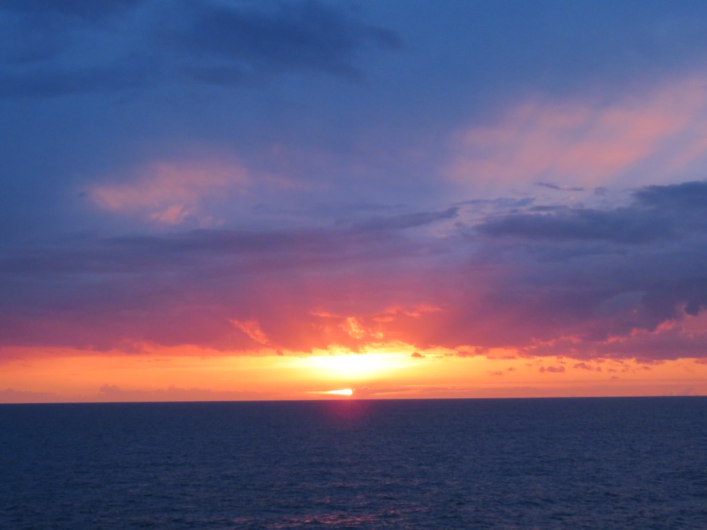 Getting up at 5am definitely paid off. By evening, heavy rain had started, and we would not have been able to see any of the beauty that surrounds us. The rain did stop, however, in time for an interesting sunset.