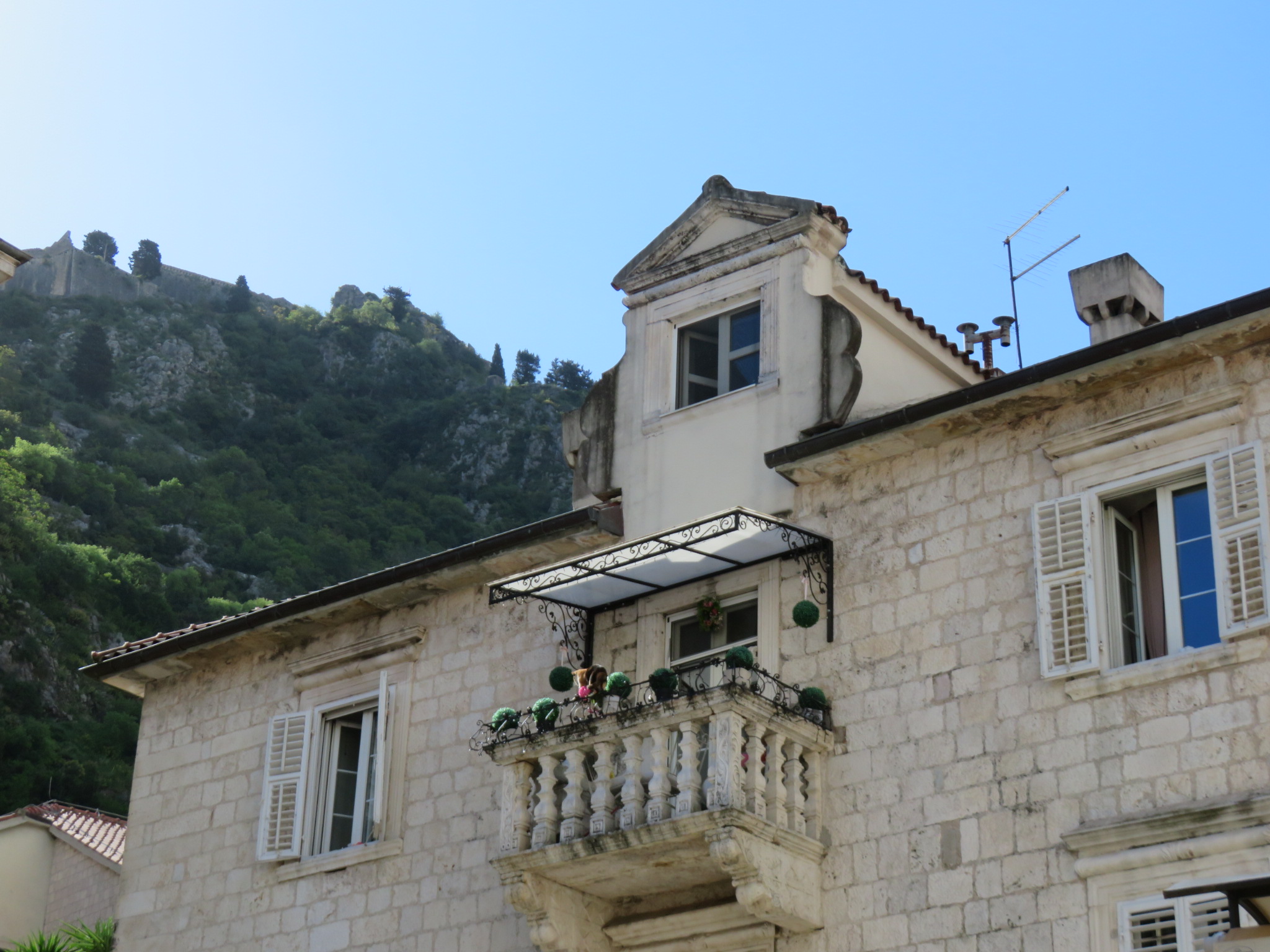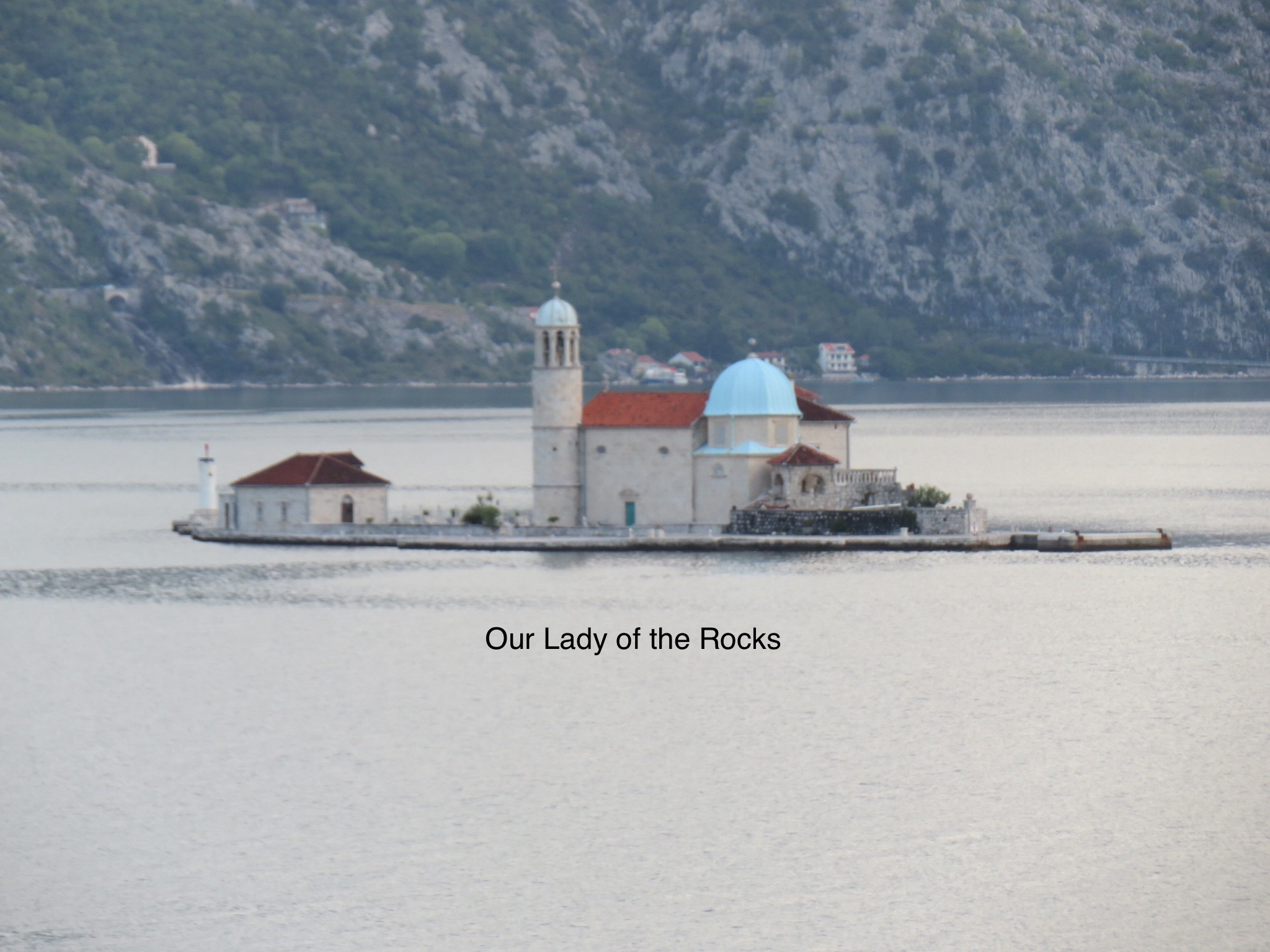 As we approached Kotor, we passed by two islands, one natural and one artificial. Our Lady of the Rocks was created after local seamen found an icon of the Madonna and Child on the rock in the sea on July 22, 1452. After returning from a successful sea voyage, sailors would lay another rock in the bay. Over time, the accumulation of rocks resulted in an artificial island. At some time, a tiny Orthodox chapel was built here, then replaced by the Venetians with a Catholic chapel in the 1600s. Every year, on July 22, local citizens take their boats there and throw rocks into the sea.The other island, St. George, is home to the Monastery of St. George, built in the 12th century.