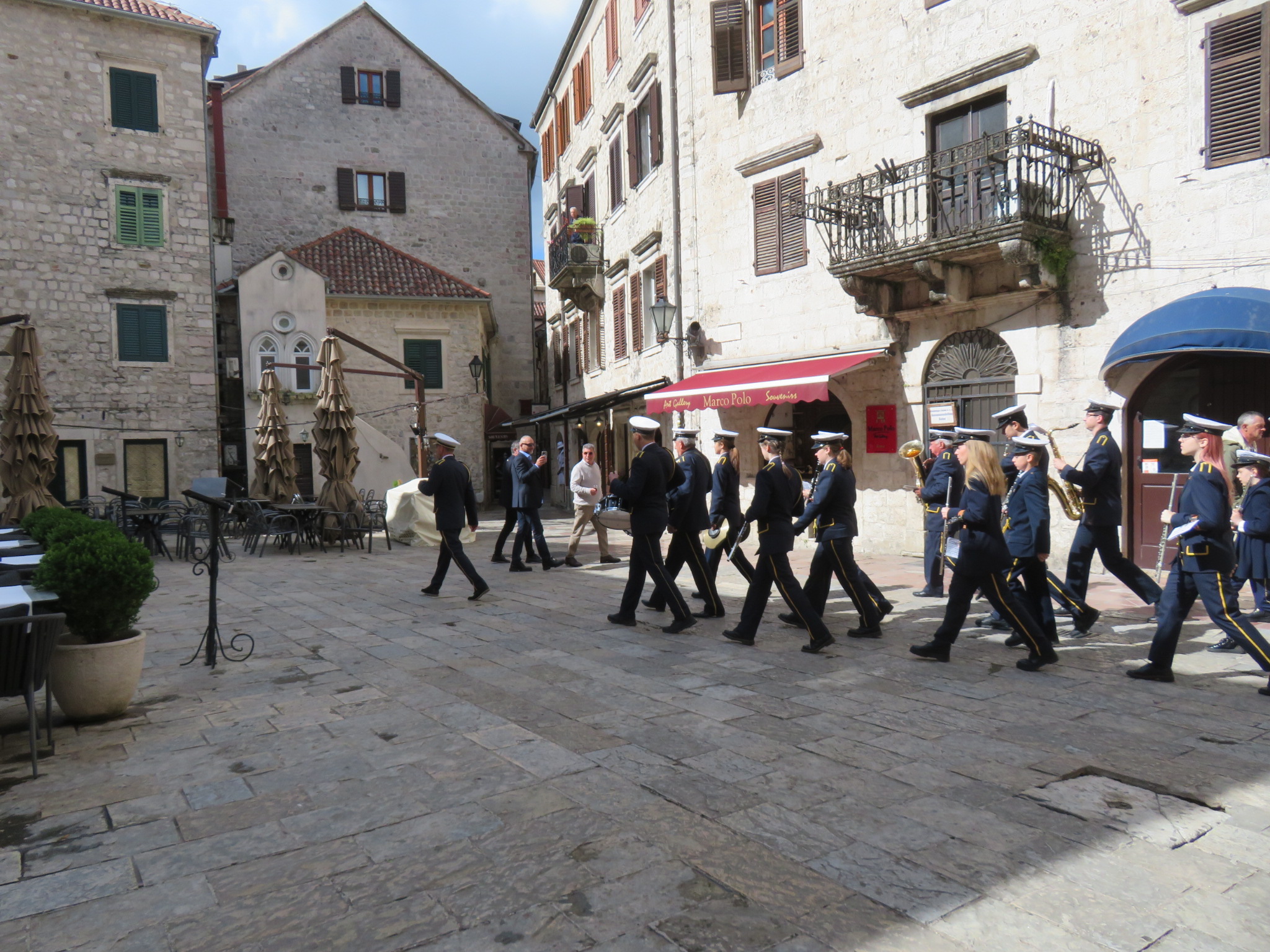 We also visited the Kotor Maritime Museum, established around 1880 with many artifacts from that time and earlier, most related to the maritime industry, but also some cultural items such as furniture, dishes and regional costumes. Before viewing the exhibits, we were distracted by a small marching band that marched through the square outside the front door. We don’t know what the occasion was, but we enjoyed the very short performance.
