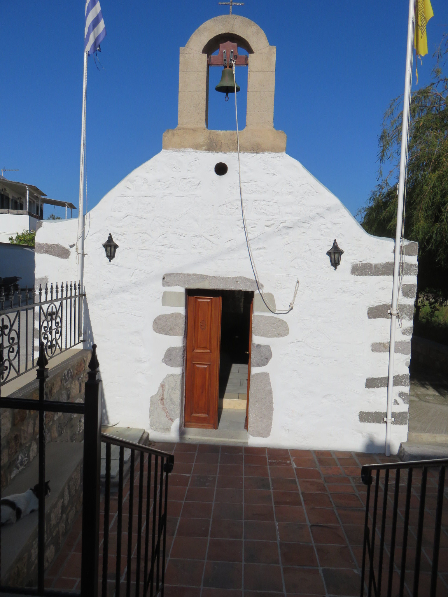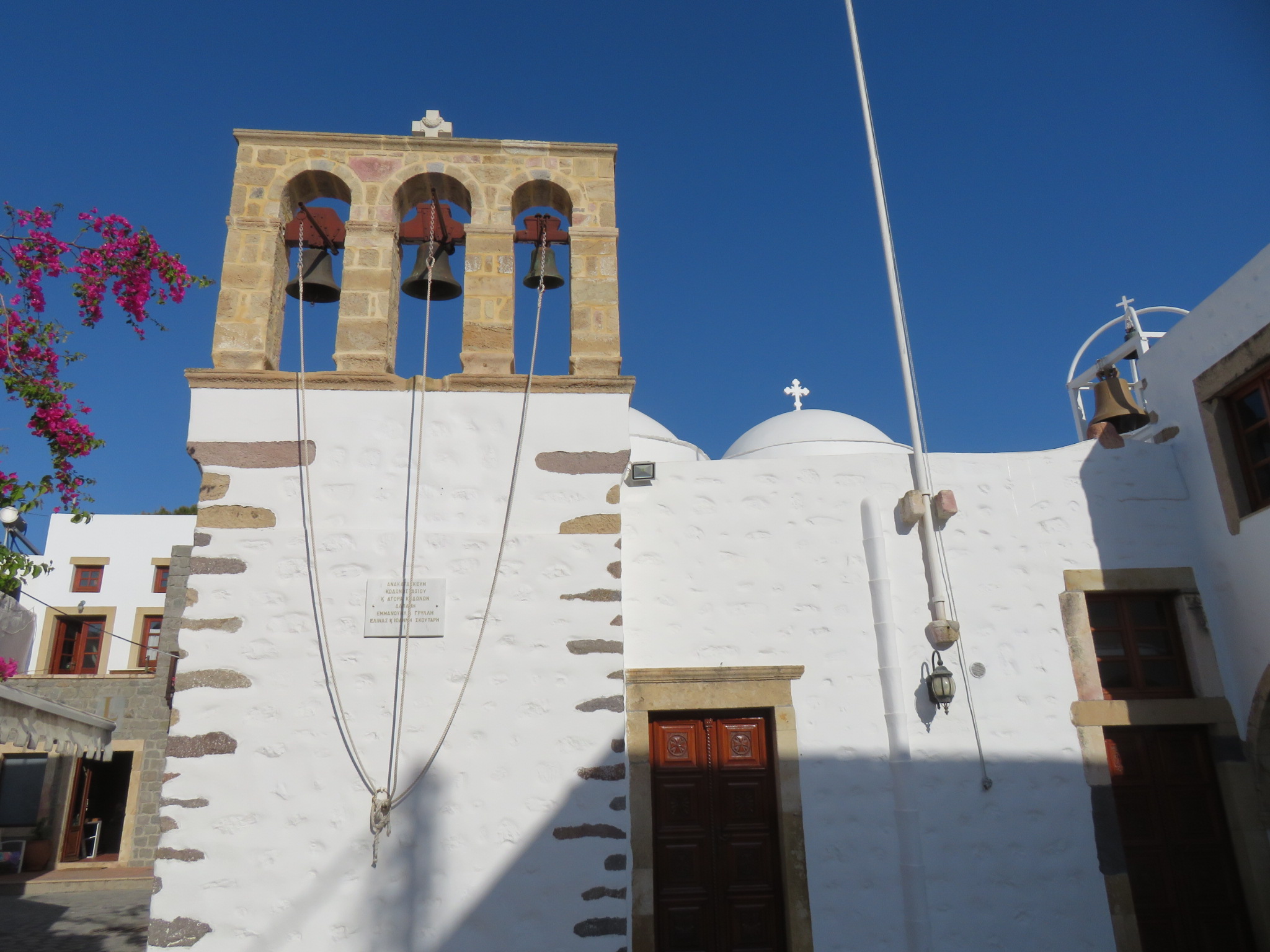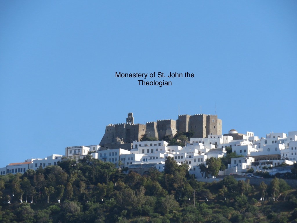 Our second stop today was at Patmos, known as being where John of Patmos received the revelation that he shared in the New Testament Book of Revelation. Some historians speculate that this was the same John of the Gospels, but no one knows for sure. John was said to have brought Mary to Ephesus after Jesus died, so maybe?? Visitors can go to the Cave of the Apocalypse where John is said to have received his revelation, as well as to the Monastery of St. John the Theologian, built in 1088 on a hill overlooking the town. The Monastery, Cave and surrounding town were named a UNESCO World Heritage Site in 1999.