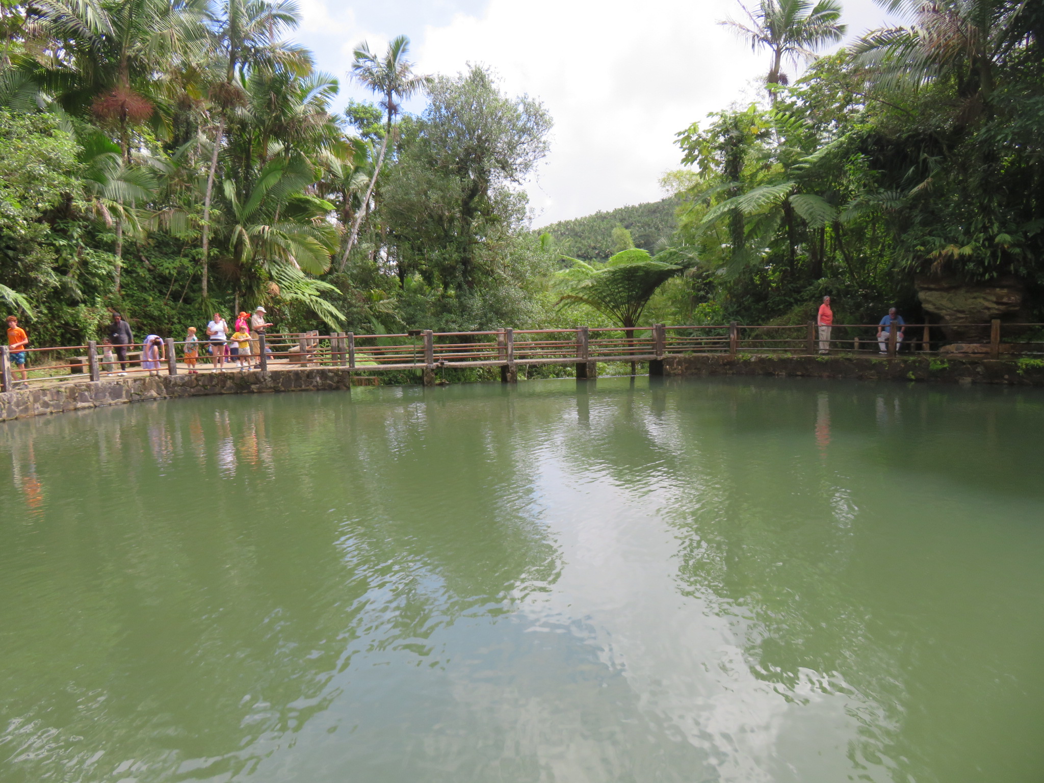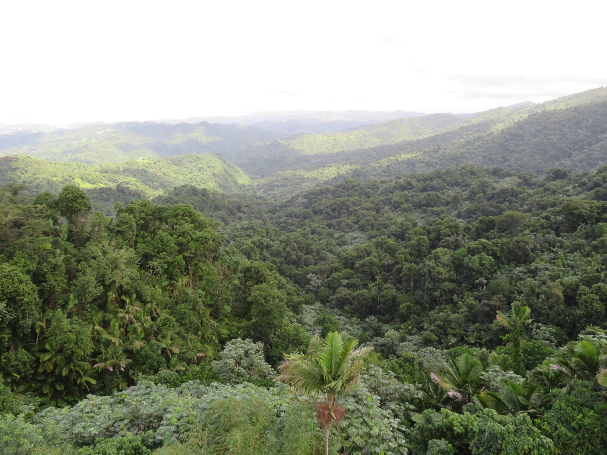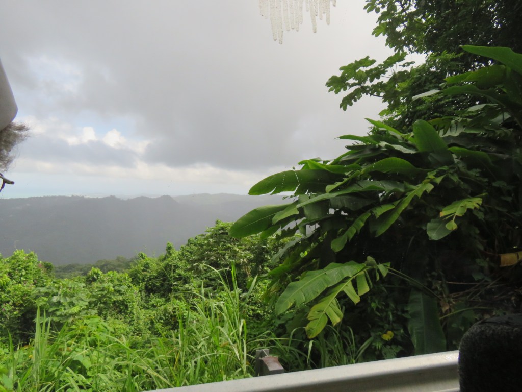 We took a tour to El Yunque National Forest, (our guide pronounced it El Joon-kay) 29,000 acre rainforest in the Luquillo Mountains. The name El Yunque means anvil in Spanish. Archeologists have found evidence of the presence of pre-Columbian cultures around 3000 BCE. Spanish colonists found gold in the early 1500s, and mined here for several decades, but didn’t fine much. The forests were a source of timber in the mid to late 1800s.